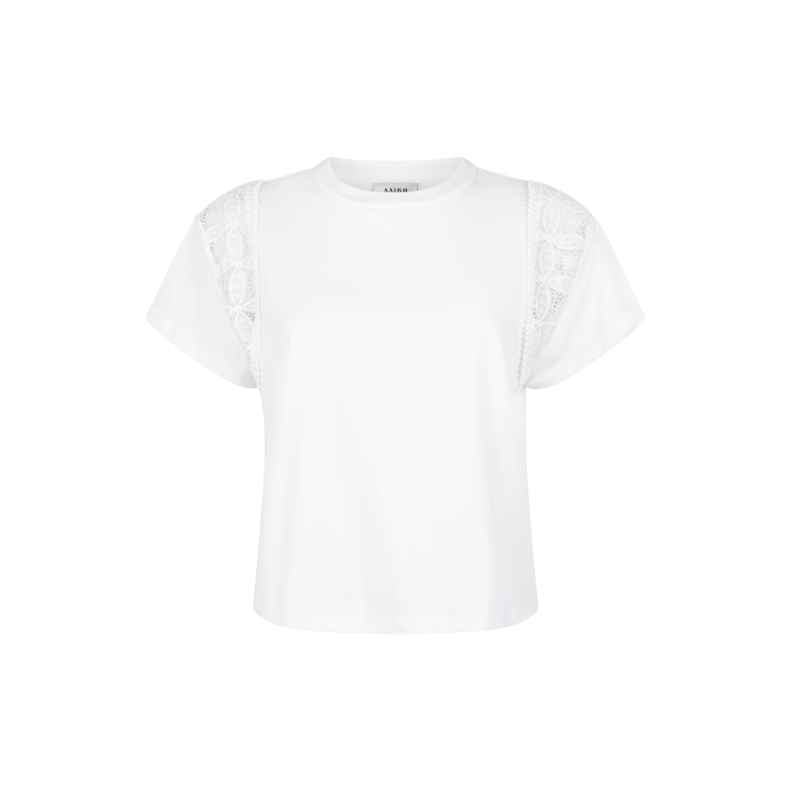 De Aaiko Ceyda CO Top in de kleur Blanc is een absolute zomerfavoriet die romantiek en frisheid perfect combineert. De kleur "Blanc" is een helder, stralend wit dat elke outfit direct een schone en luxueuze uitstraling geeft. Wat de Ceyda zo bijzonder maakt, zijn de verfijnde details in de stof. "CO" staat voor katoen (cotton), en vaak is dit model uitgevoerd met prachtig broderie anglaise of ajour-details (fijne gaatjespatronen). Dit geeft de top een luchtige, vrouwelijke textuur die perfect past bij warme dagen. De top heeft vaak subtiele pofmouwtjes en een elegante v-hals of ronde hals, wat zorgt voor een dromerig silhouet.