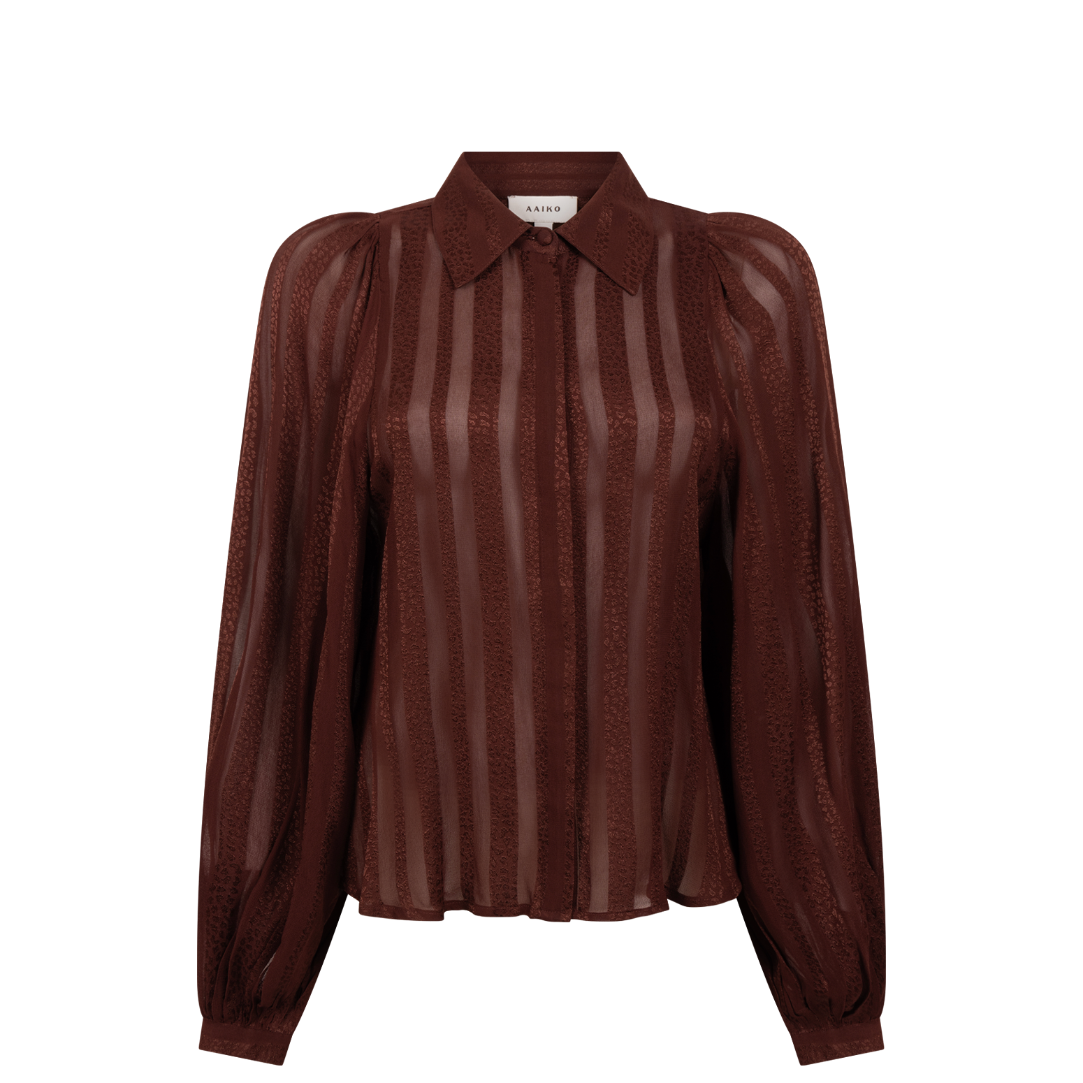 De Aaiko Rose Stripes vis Blouse in Spicy Chocolate is een elegante blouse met een vrouwelijke pasvorm en een subtiel gestreept dessin. Het lichte, soepele materiaal zorgt voor comfort en een luxe uitstraling, terwijl de warme spicy chocolate tint een stijlvolle touch toevoegt. Perfect voor zowel casual als chique combinaties.
