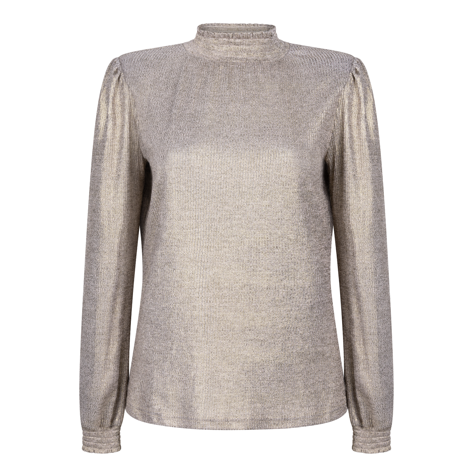 De Aaiko tory gold pes longsleeve top in gold straalt luxe uit met zijn prachtige gouden kleur en elegante design. De zachte stof en rechte pasvorm zorgen voor een comfortabele en flatterende fit. Perfect om je look te upgraden met een stijlvolle, opvallende touch.