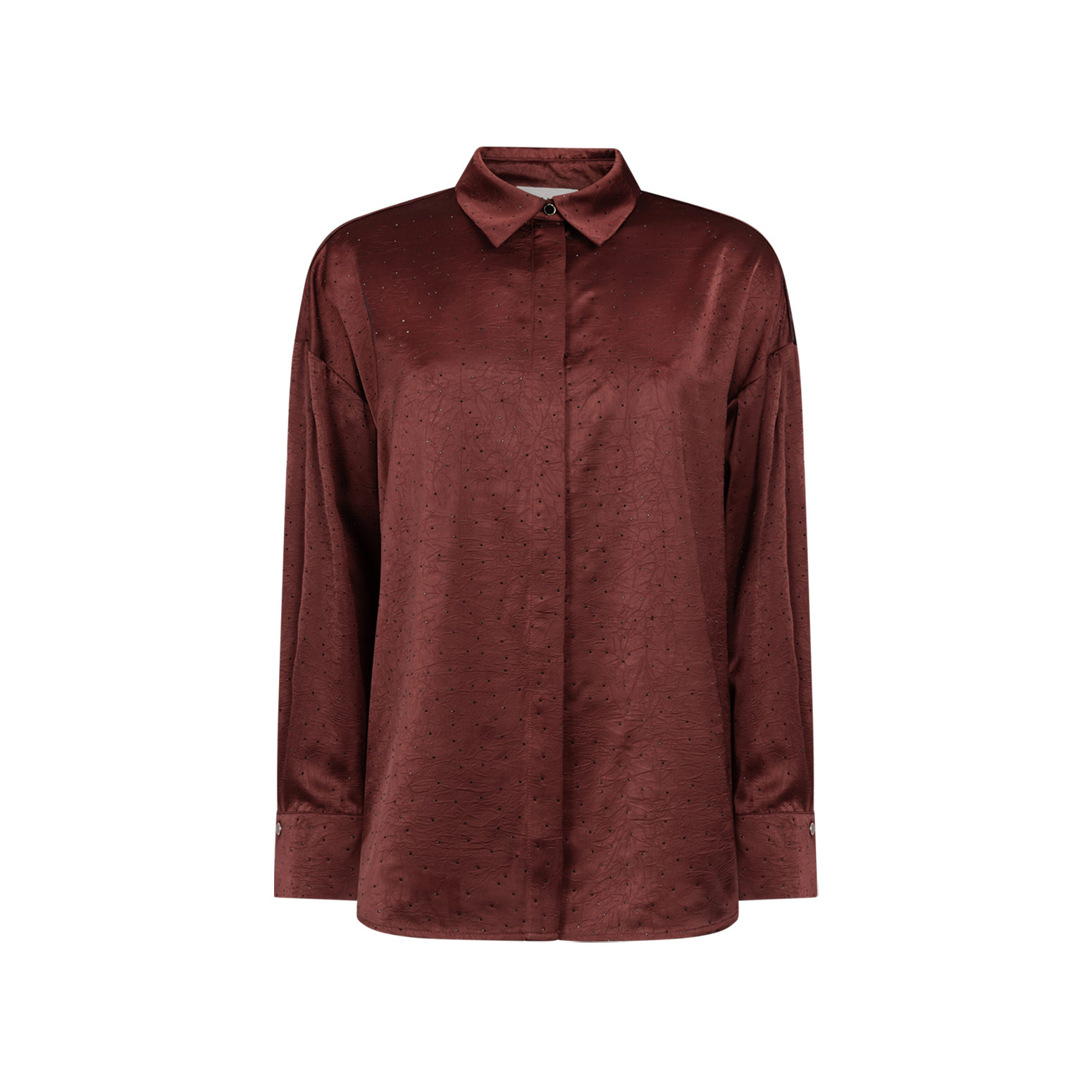 De Aaiko Violet PES Blouse in Vinoa is een elegante blouse van licht, soepel materiaal met een vrouwelijke pasvorm. De diepe vino tint geeft de blouse een warme, verfijnde uitstraling. Ideaal voor zowel chique gelegenheden als stijlvolle casual outfits.