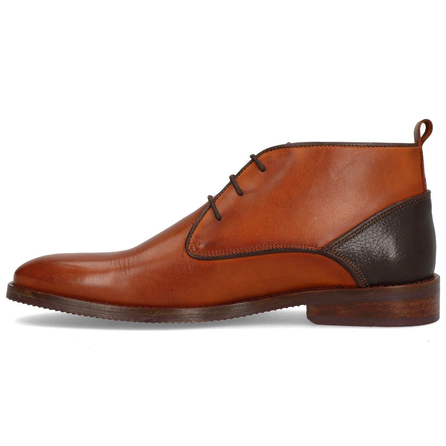 De Dakar Cognac is een geklede halfhoge veterschoen voor heren. De schoen is gemaakt van soepel cognac leer met een bruin leren accent op de hiel. De leren binnenvoering en het uitneembare voetbed zorgen voor een comfortabel gevoel bij elke stap. De rubberen loopzool is soepel en geeft goede grip. Draag deze geklede boot voor heren bij je business outfit of casual bij een jeans en je look is compleet.