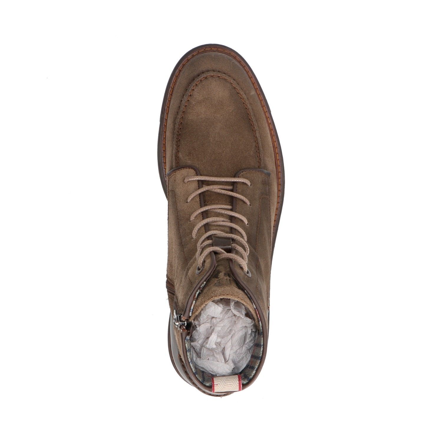De Riga Douglas suede is een stoere boot voor heren van Berkelmans. De Boot is gemaakt van soepel suede in de kleur grijs/bruin en is voorzien van een groove profielzool voor grip en comfort tijdens winterse omstandigheden. De hoge vetersluting en de opstaande rand op de neus benadrukken de stoere uitstraling van deze veterboot voor heren. De comfortabele binnenvoering en het uitneembare voetbed van leer maken de schoen ook prima geschikt voor het gebruik van een eigen voetbed.