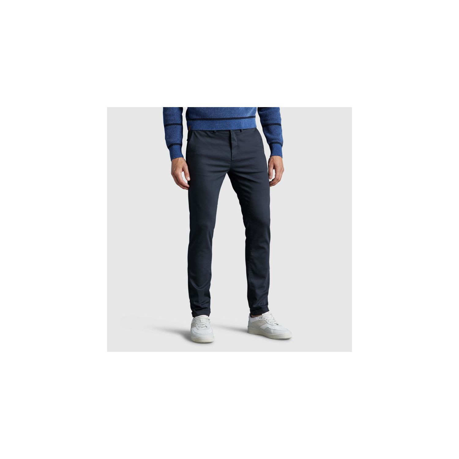Deze chino van Cast Iron is donkerblauw van kleur. Het is een slimfit model met steekzakken.