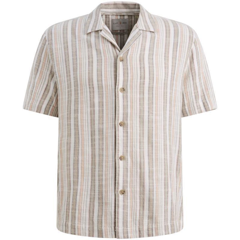 Het cast iron s/s shirt slub twill stripe in aluminum is een stijlvol overhemd met korte mouwen en een subtiel streepjesdessin dat textuur en karakter toevoegt. Het zachte slub twill materiaal zorgt voor optimaal draagcomfort en een nette pasvorm. In de frisse aluminum tint is dit shirt een veelzijdig item dat zowel casual als smart casual looks moeiteloos aanvult.