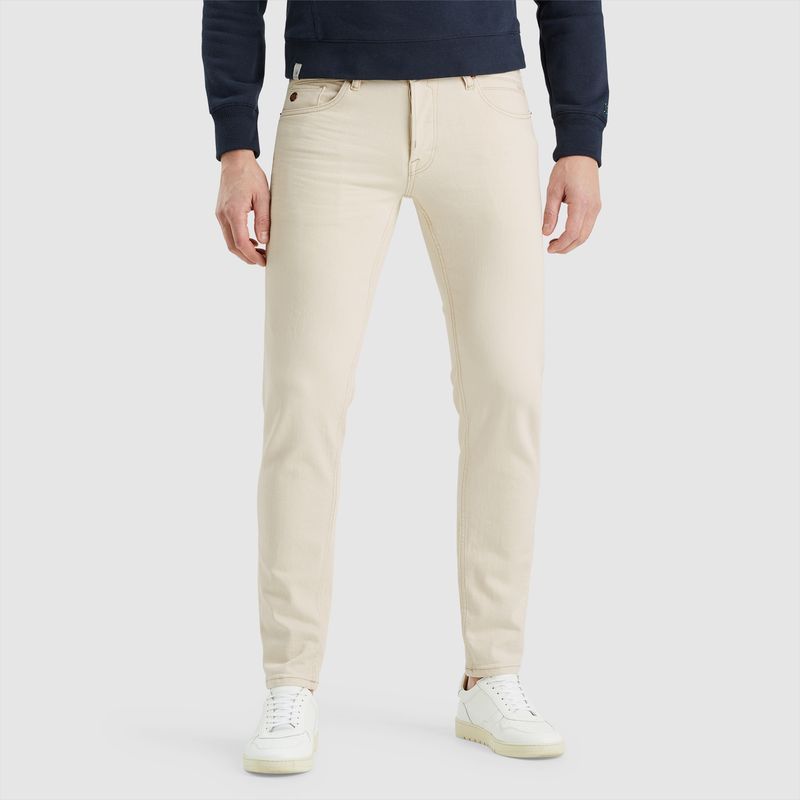 De Shiftback denim is ontworpen met een toelopende pasvorm die comfortabel zit rond de taille en geleidelijk smaller wordt vanaf de knieën. De jeans heeft een licht beige kleur en de toevoeging van comfort stretch maakt hem buitengewoon comfortabel om te dragen. Het gebruik van koperen accenten en de kenmerkende details van Cast Iron geven het ontwerp een verfijnde afwerking.