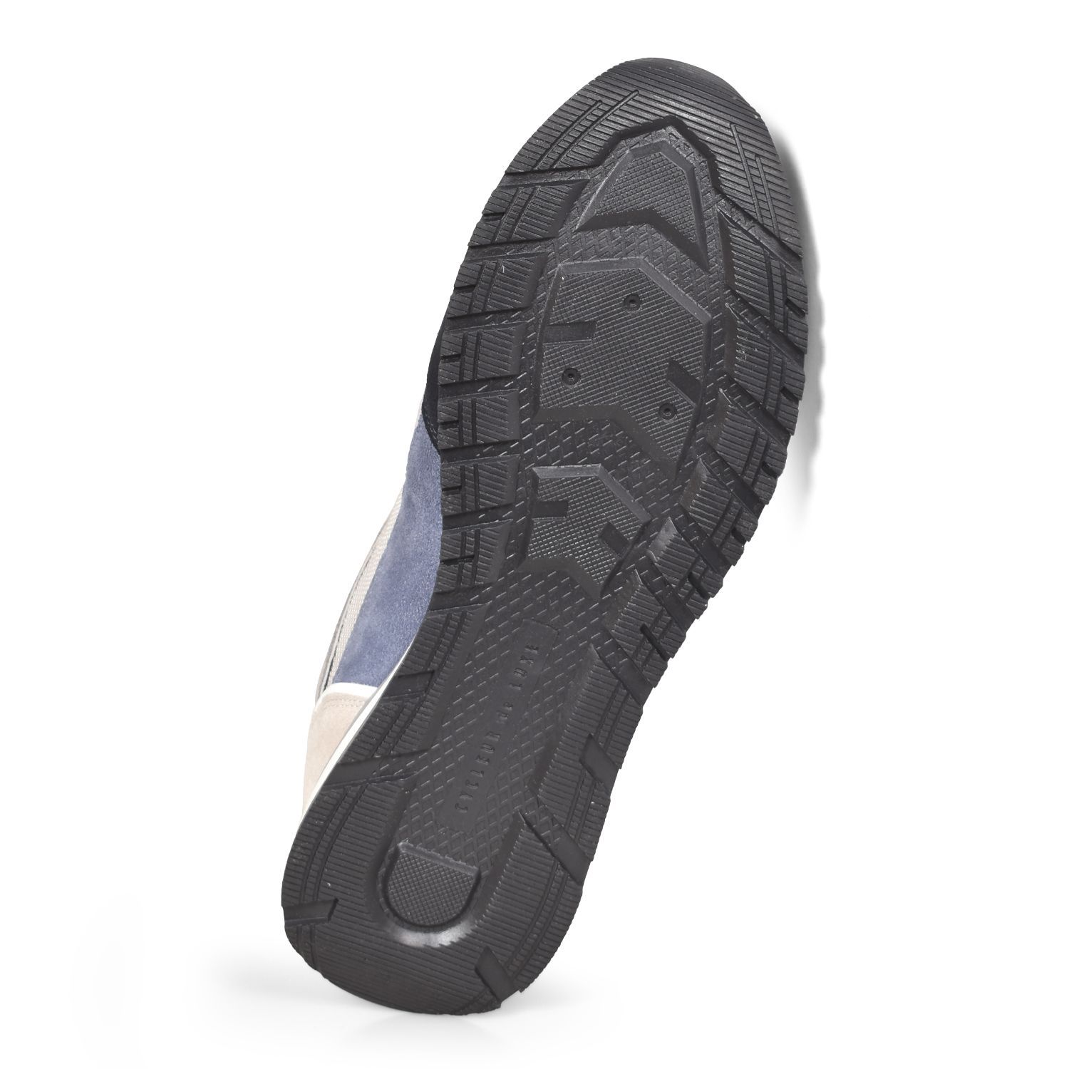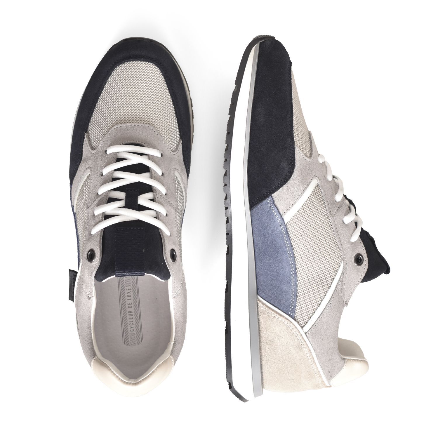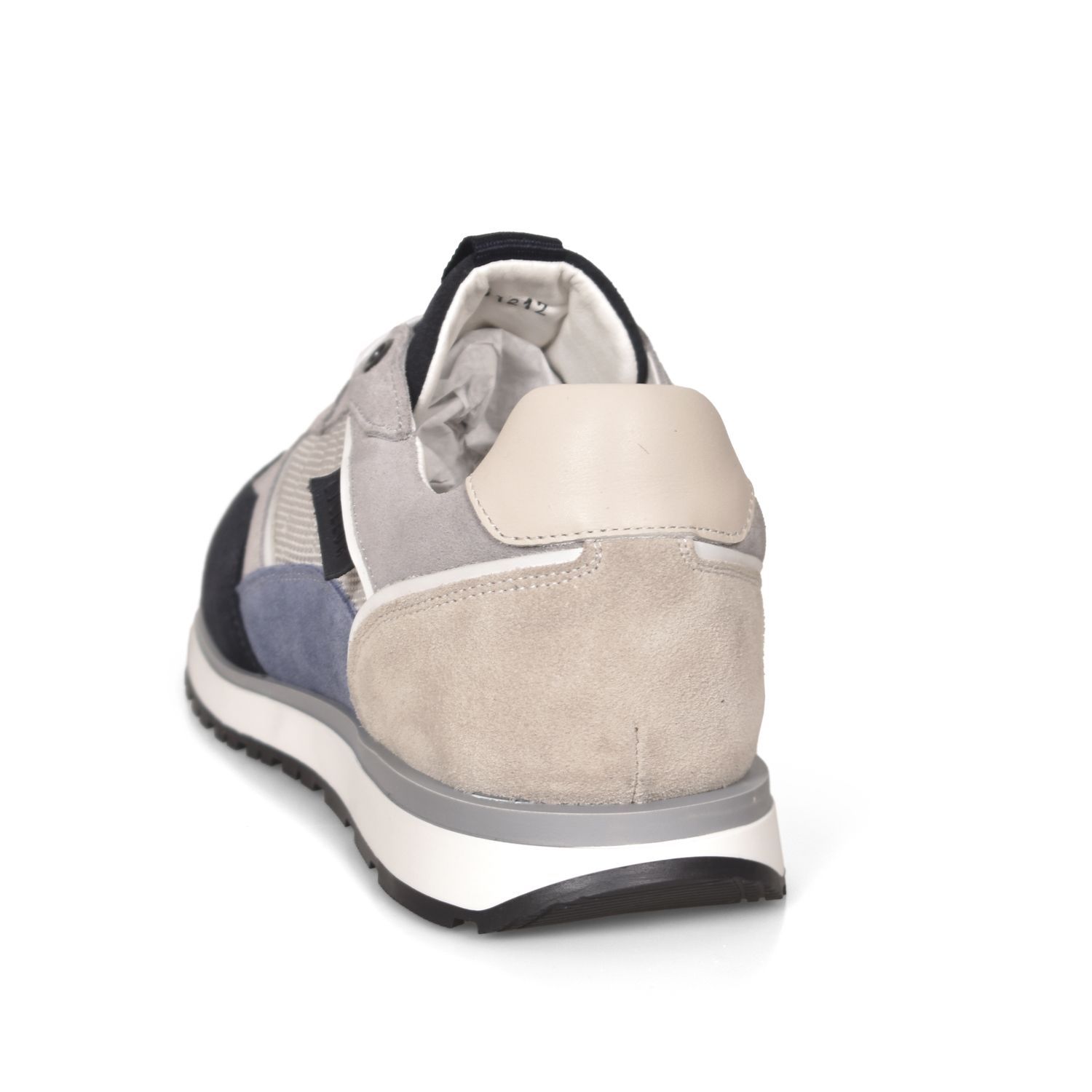 De Runoff is een stijlvolle sneaker voor heren gemaakt van een combi van zacht suede in de kleuren donkerblauw en lichtgrijs en lichtgrijs mesh voor een sportieve uitstraling. De binnenvoering van zacht leer en het leren uitneembare voetbed zorgen voor een comfortabel gevoel gedurende de dag. De witte runningzool met zwart loopvlak geeft goede grip en comfort. Match deze sportieve veterschoen voor heren bij een casual of semi-geklede outfit en je look is compleet.
