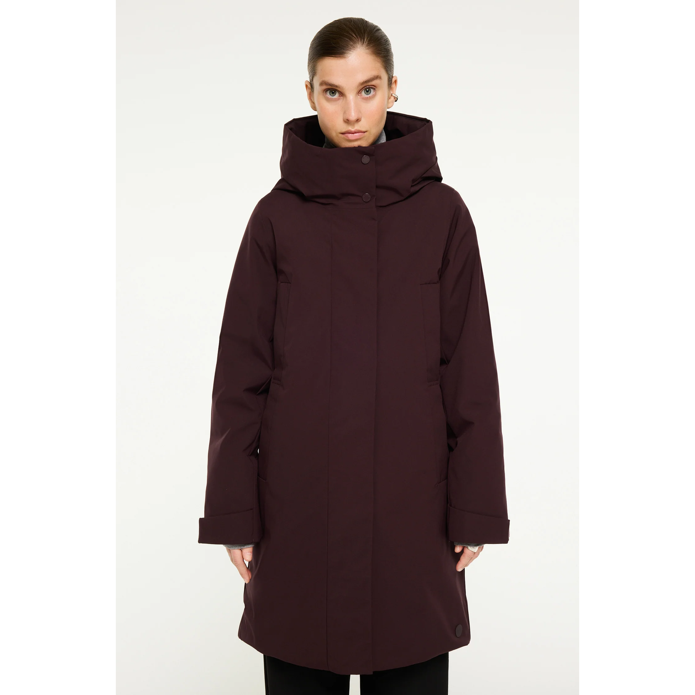 De **Elvine Eline Jacket in Wine** is een eigentijdse jas met een minimalistisch design en een verfijnde uitstraling. De waterafstotende stof en praktische details zorgen voor comfort en bescherming in elk seizoen. In de diepe wine tint is dit een stijlvolle en veelzijdige jas die perfect past bij zowel casual als geklede outfits.