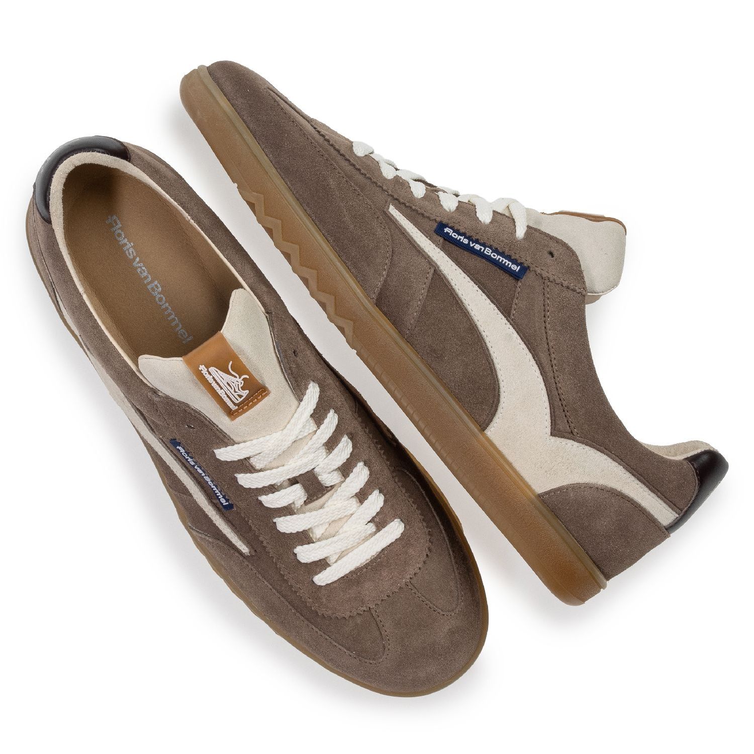 De Zaler is een taupe suede sneaker voor heren. Deze retro sneaker heeft een leren binnenvoering en een uitneembaar voetbed wat voor veel comfort zorgt tijdens het lopen. De soepele gummiezool met zigzag profiel en het taupe suede gecombineerd met de licht suede accenten en de bruin leren hielstuk met FvB logo benadrukkken de retro uitstraling van deze fashion sneaker voor heren. De wijdte van deze sportieve veterschoen is een comfortabele G1/2 en is prima geschikt voor de gemiddelde en iets bredere voet.
