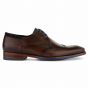 Floris van Bommel 14029-02 is een donkerbruin kalfsleren schoen met leren binnenvoering, een blauwe veter en een subtiele laserprint op de vleugelneus. De schoen heeft een slijtvaste rubber zool die volgens de Blake maakwijze is vast genaaid. De leest is G1/2.