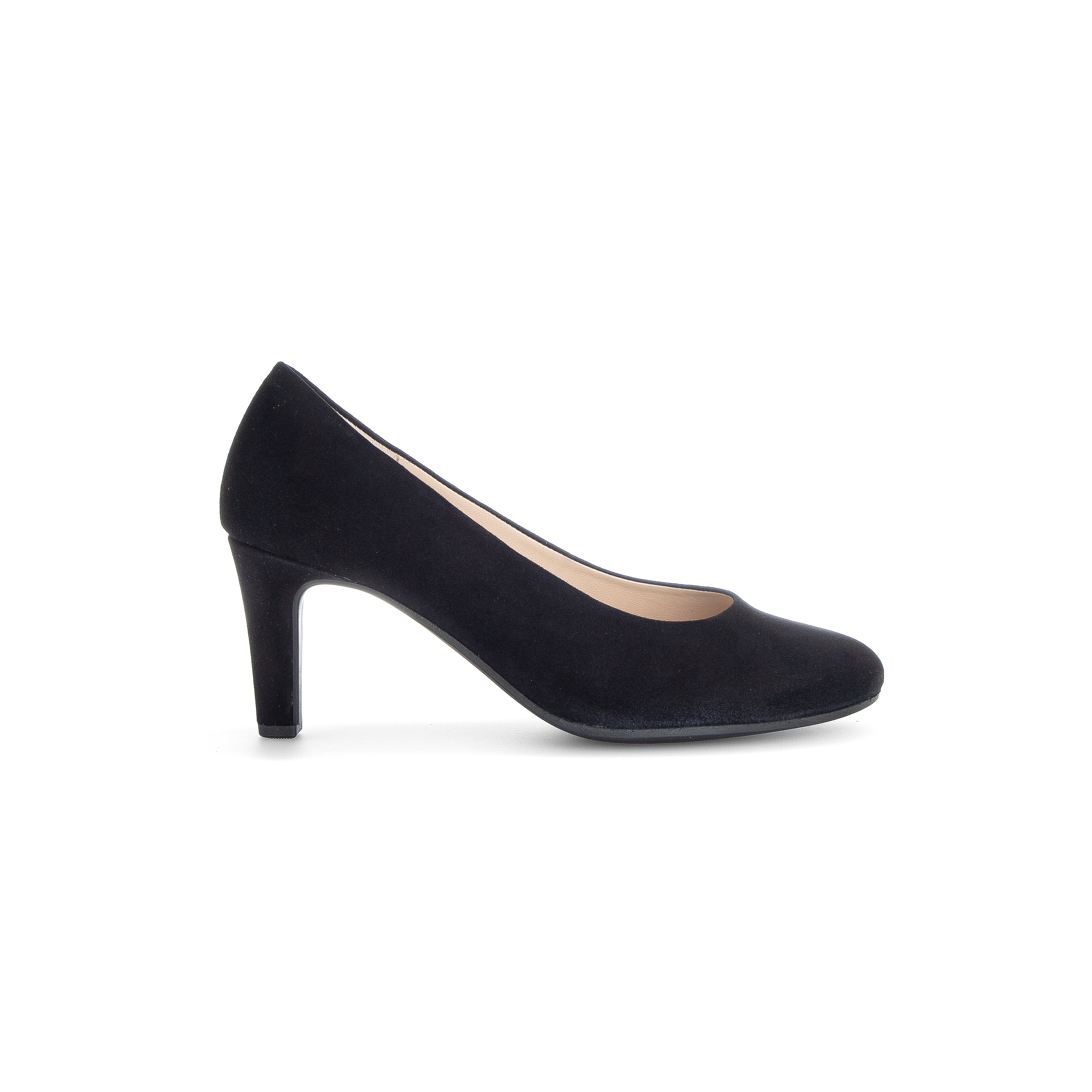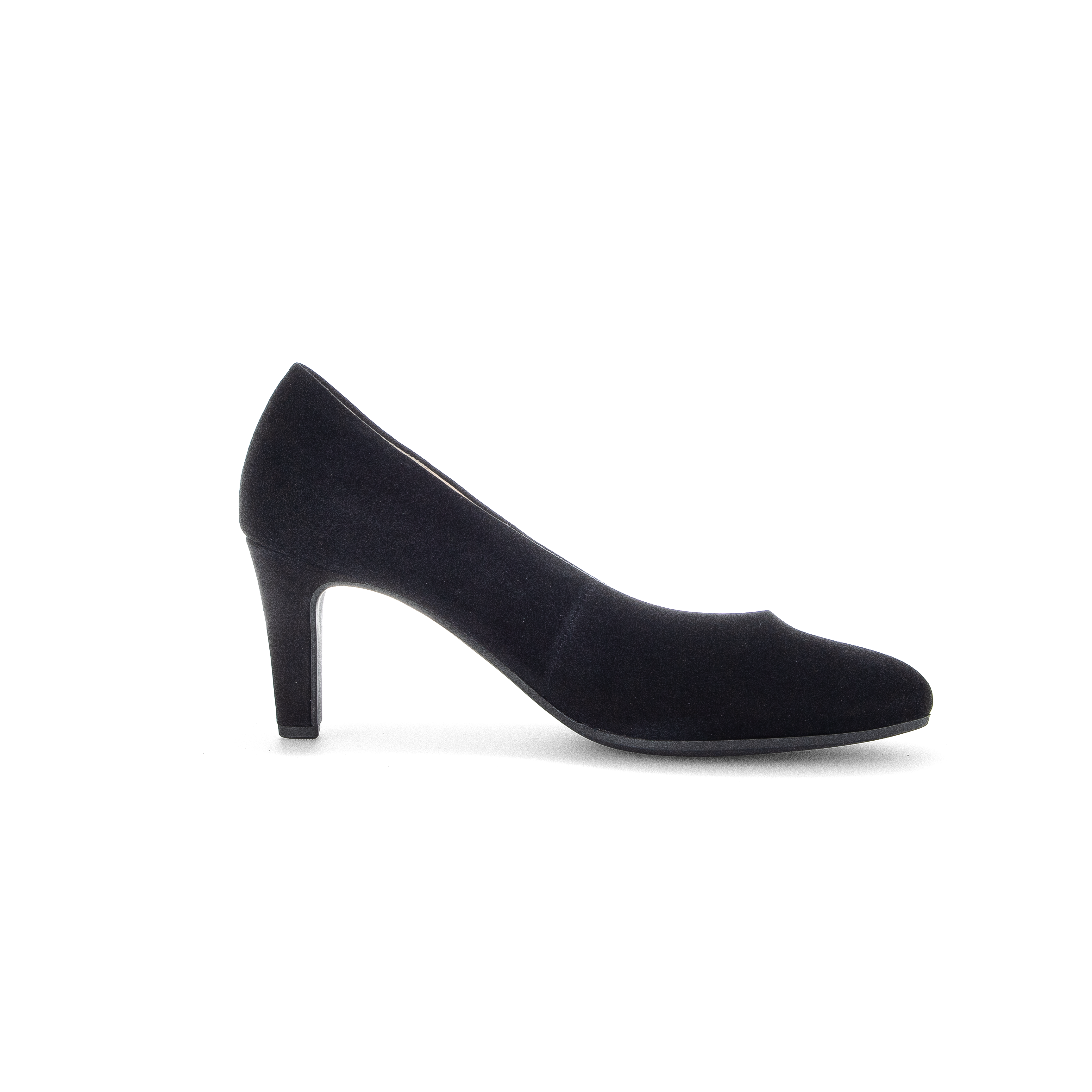 Deze elegante pump uit de Gabor Fashion collectie is gemaakt van soepel zwart suede. De leren binnenvoering en het zacht verende voetbed zorgen voor een geweldig pasvorm zodat je deze slanke pump de hele dag kunt dragen. Het rubber zooltje geeft goede grip en de 60mm hakje geeft de pump een mooie uitstraling en staat stevig. De pump is gemaakt op een mooie F wijdte, perfekt voor de slanke tot normale voet.