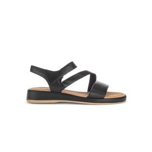 Deze zwart leren sandaal voor dames heeft een zachte leren band over de voorvoet en twee subtiele klitteband sluitingen over de wreef. Dankzij het zachte voetbed en de soepele rubberzool loopt deze sandaal super comfortabel.