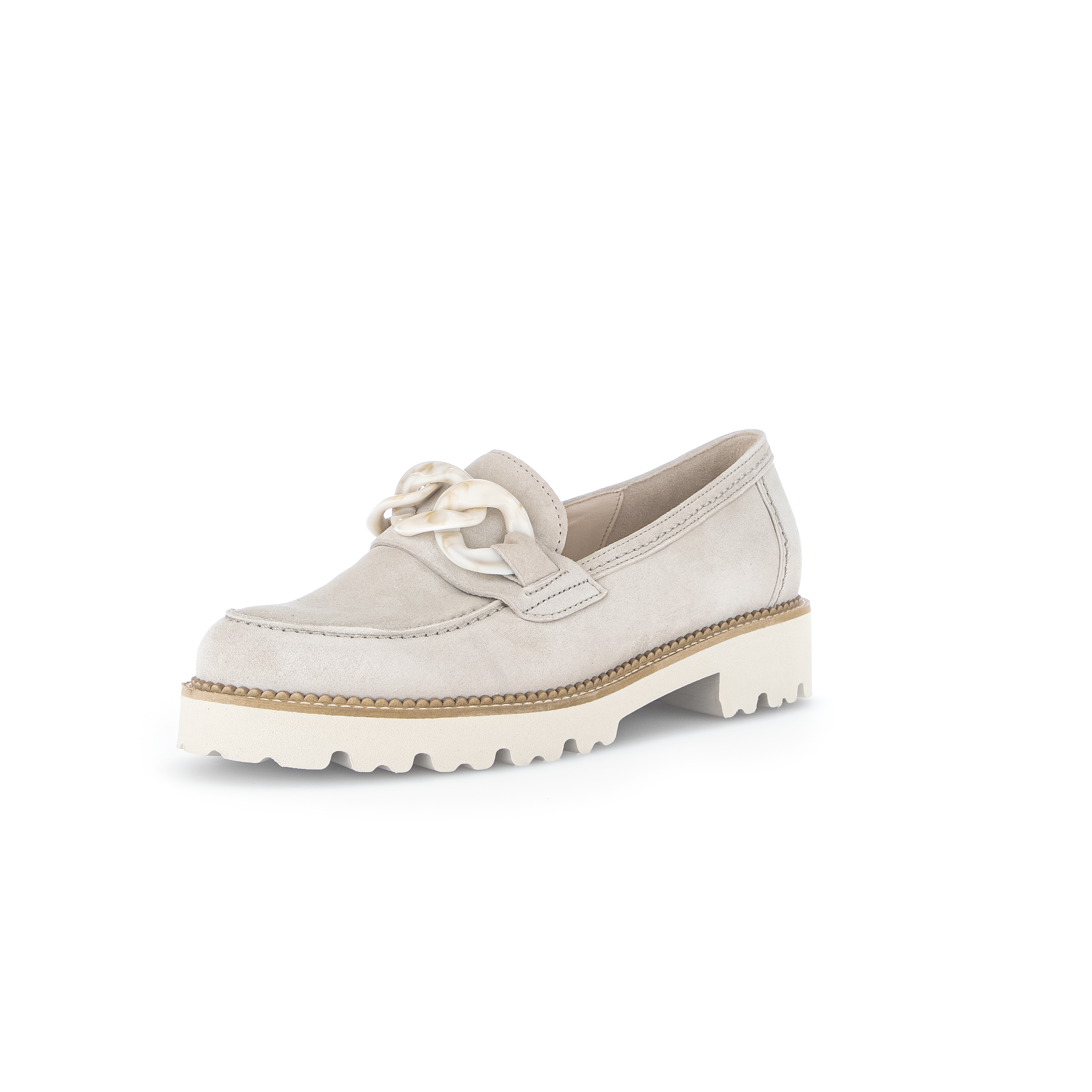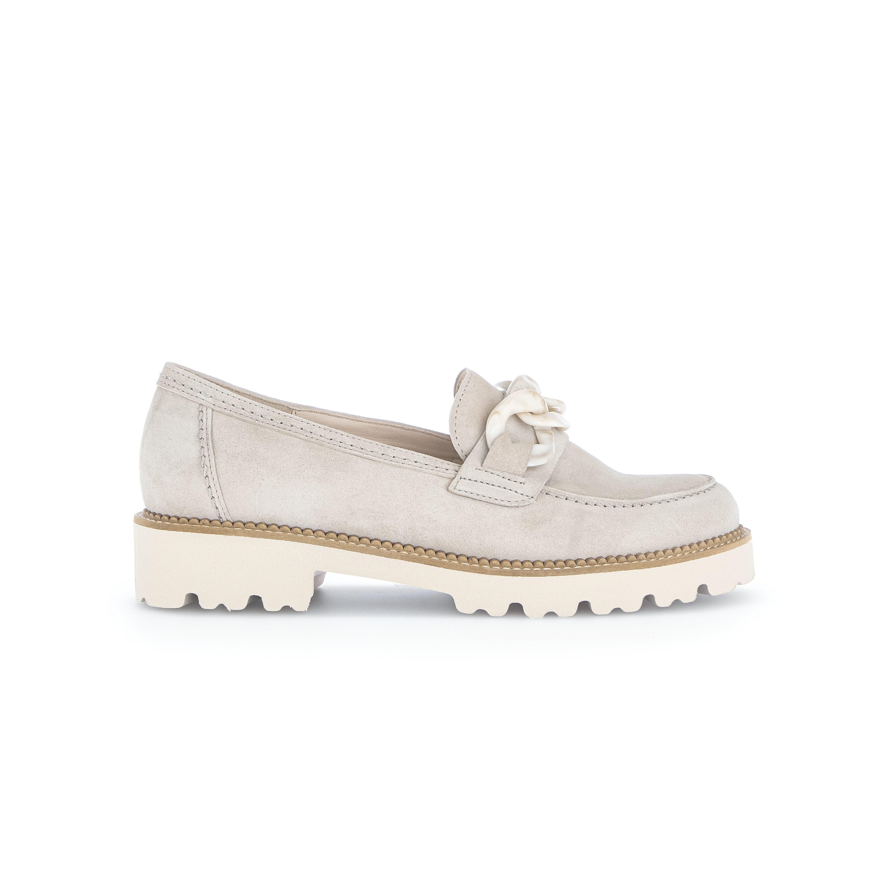 Deze trendy loafer voor dames heeft een lichgewicht zool met een chunky look. De schoen heeft een voering van zacht leer en een verende leren binnenzool. De grove ketting over de wreef maakt van deze classic een modische schoen die helemaal in het modebeeld past.