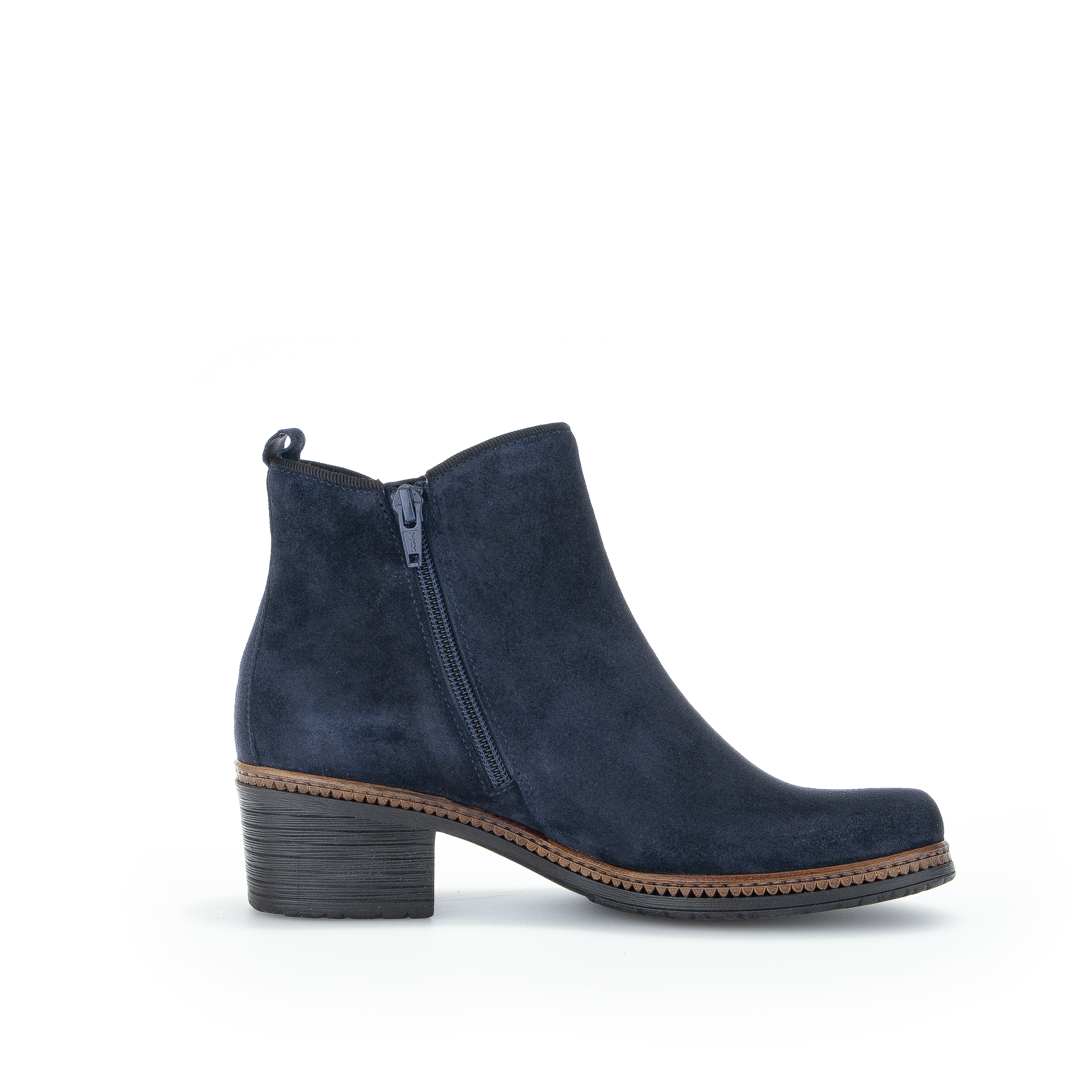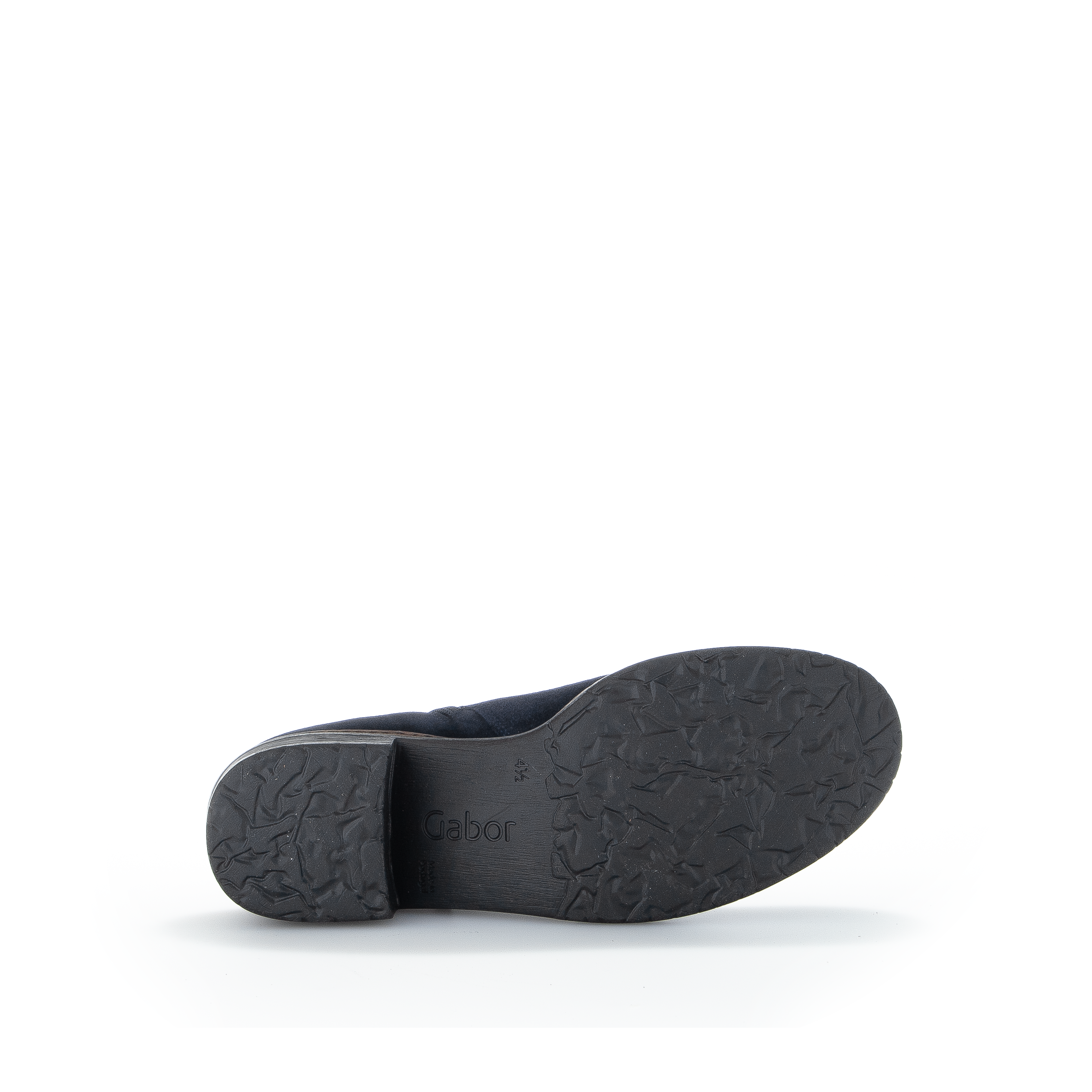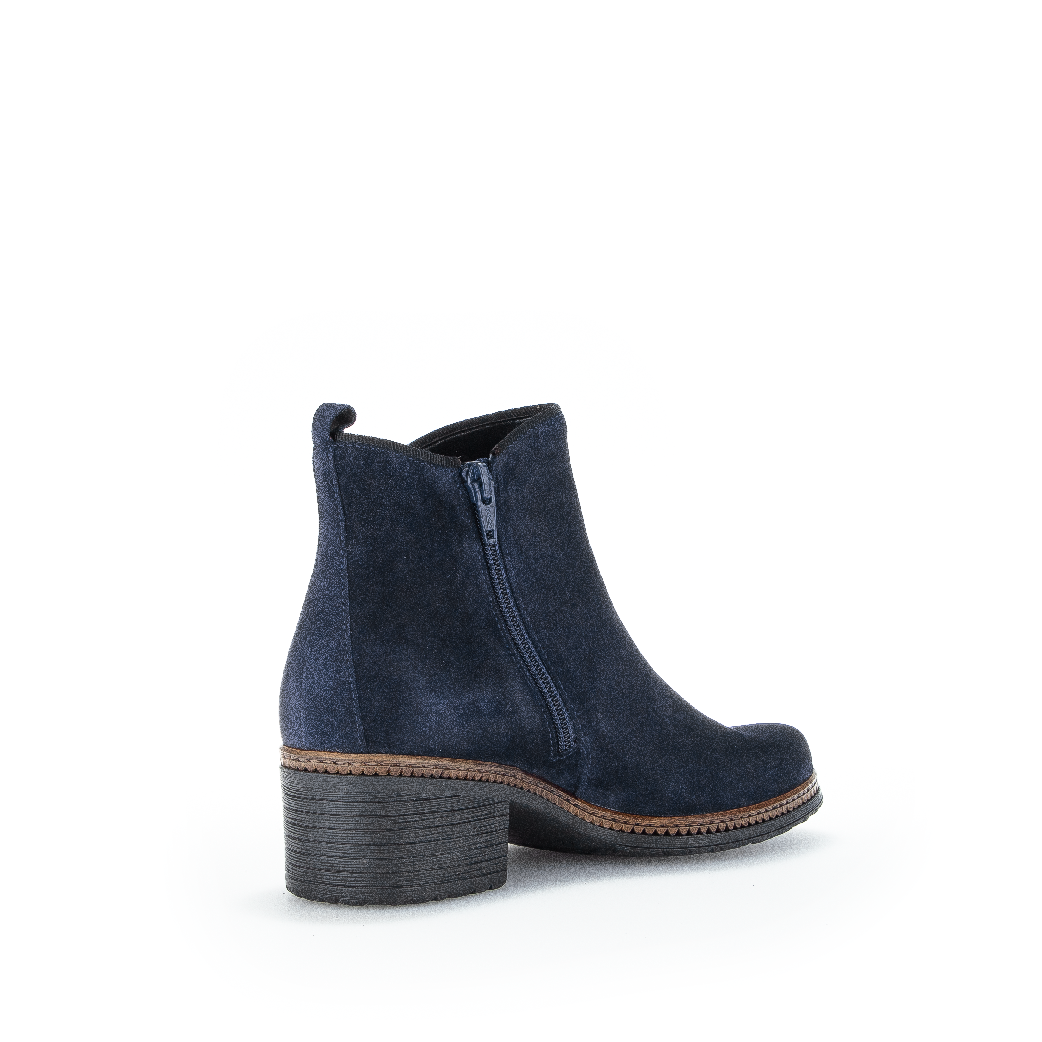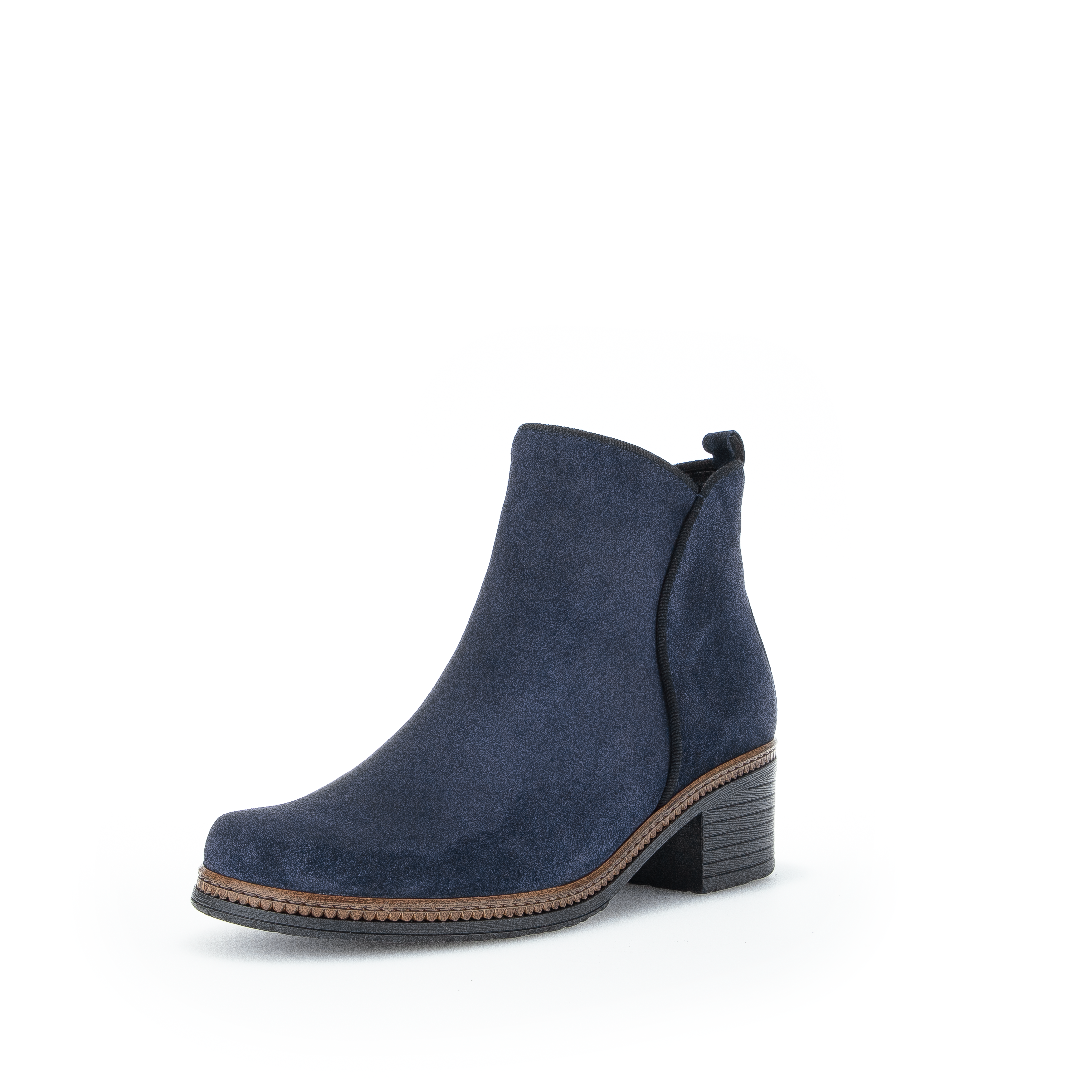 Dit marineblauwe laarsje voor dames is gemaakt van zacht suede en heeft een rubberzool met een 40mm hak en is afgezet met een cognac kleurige rand. De zachte binnenvoering voelt comfortabel zacht en het voetbed is uitneembaar zodat dit sportieve laarsje ook met een eigen voetbed gedragen kan worden.