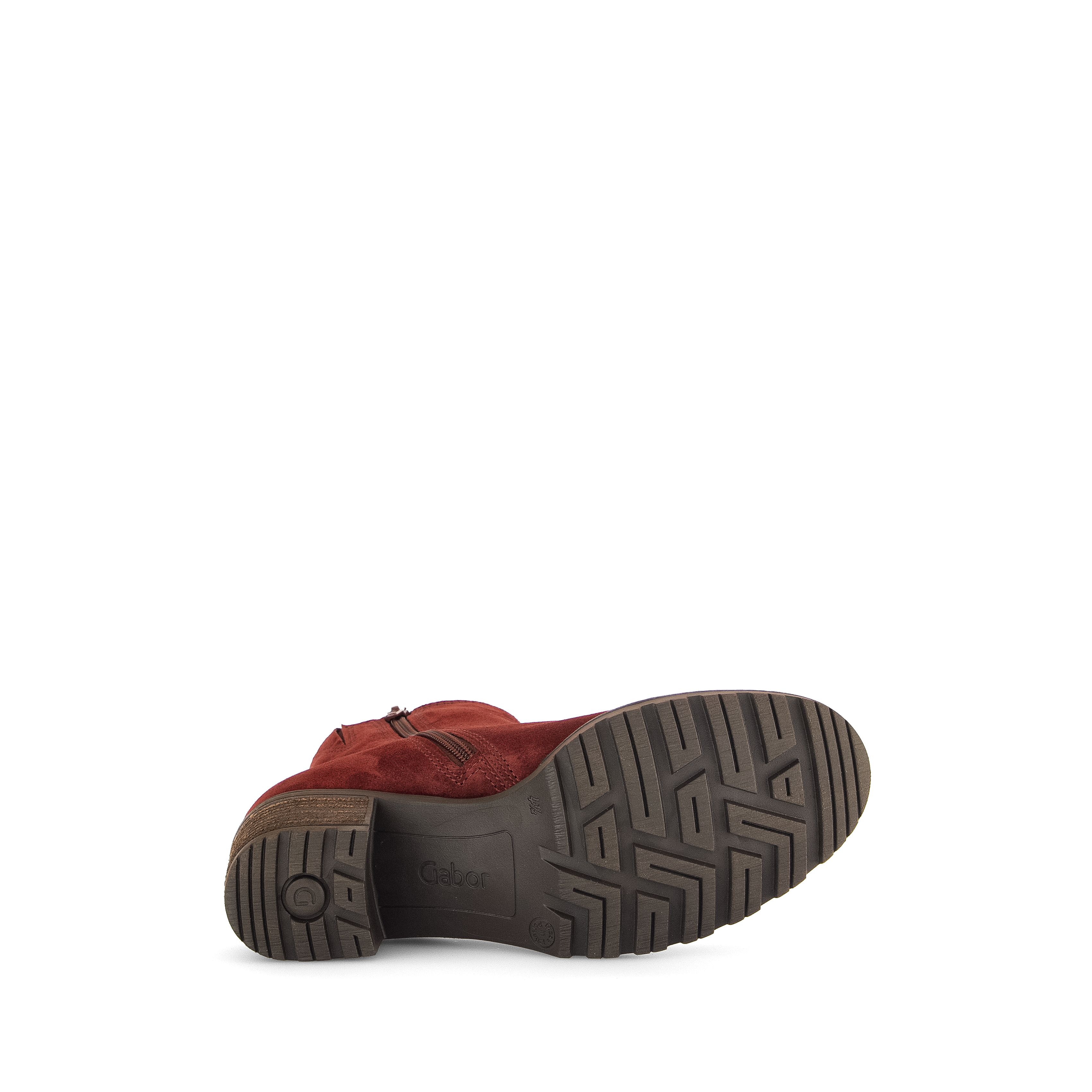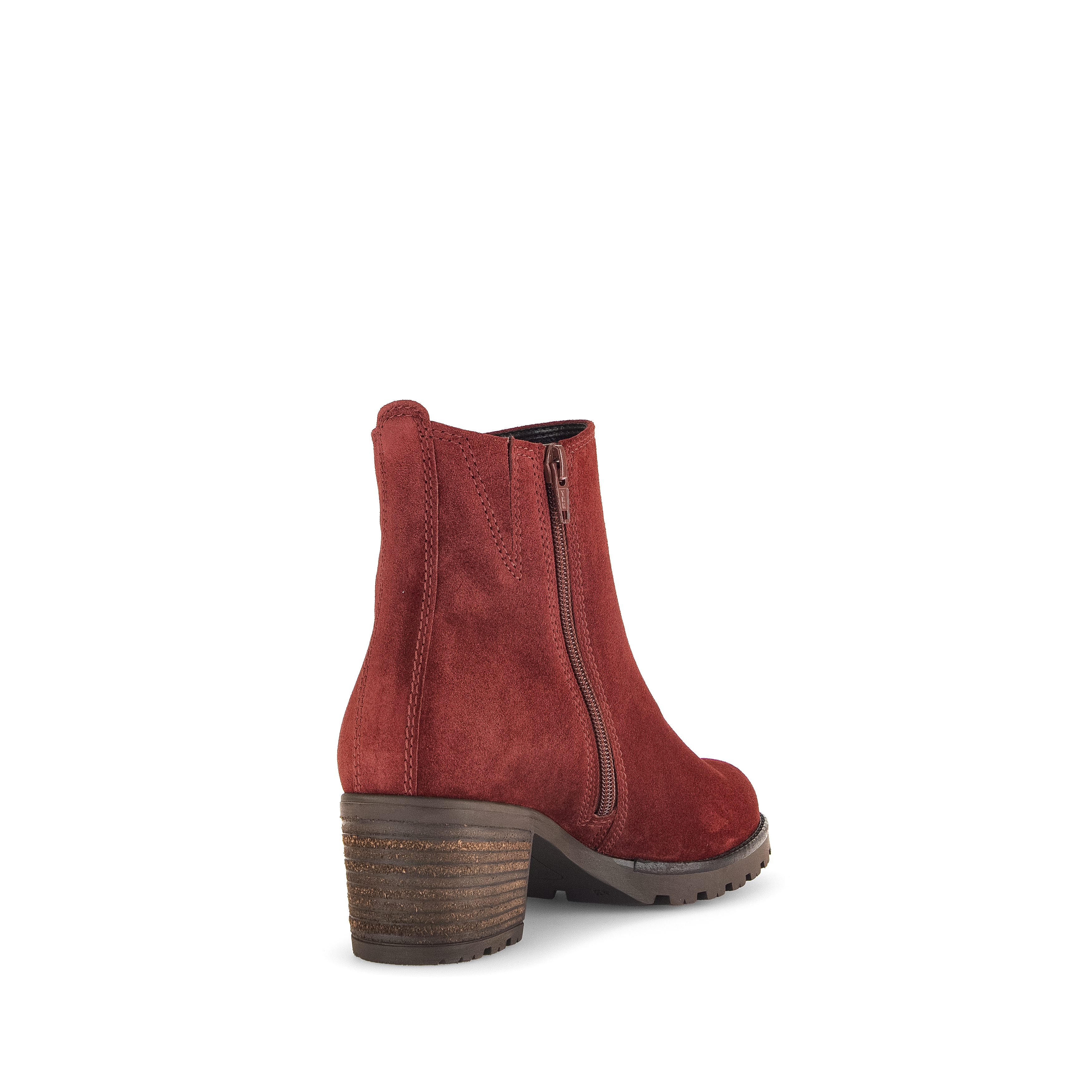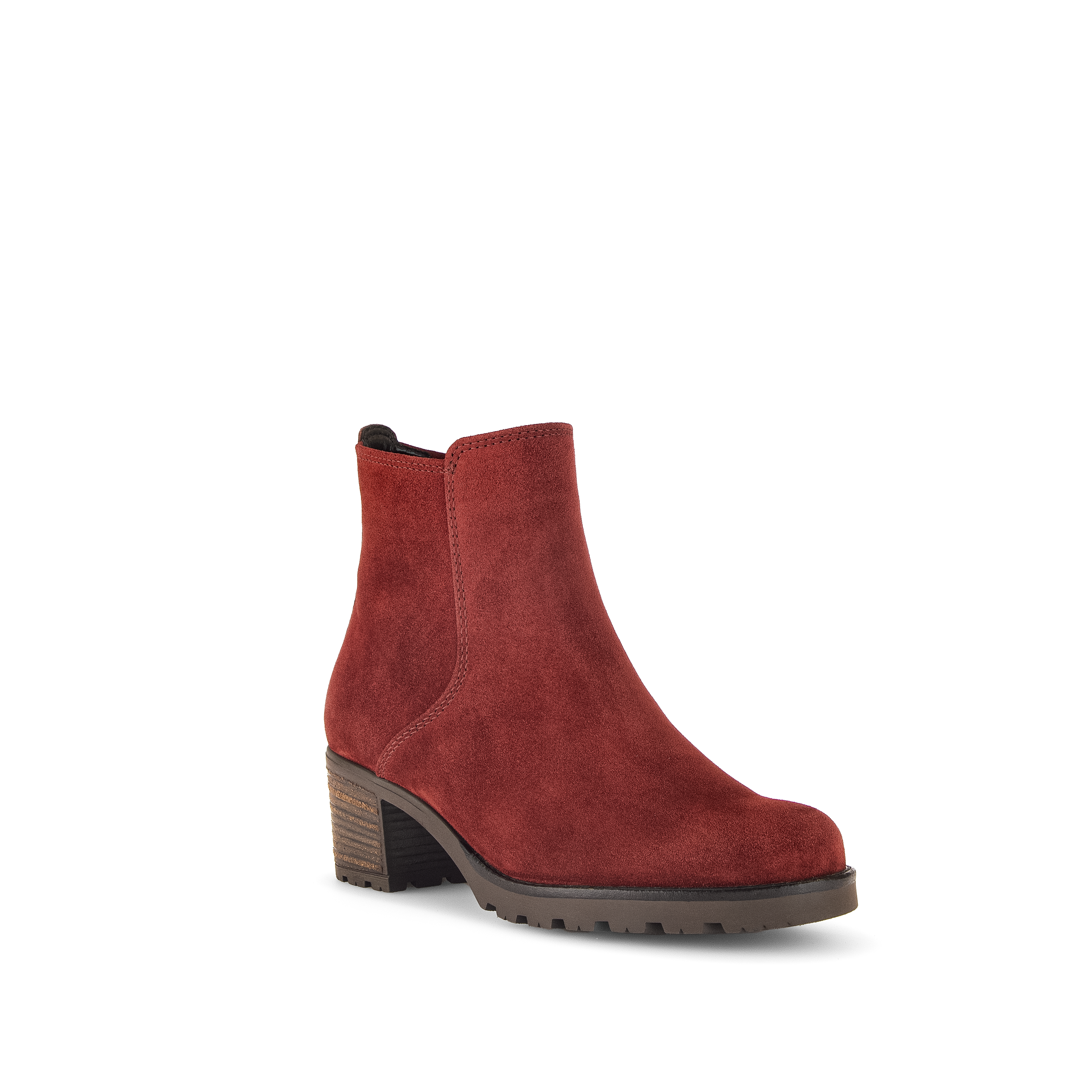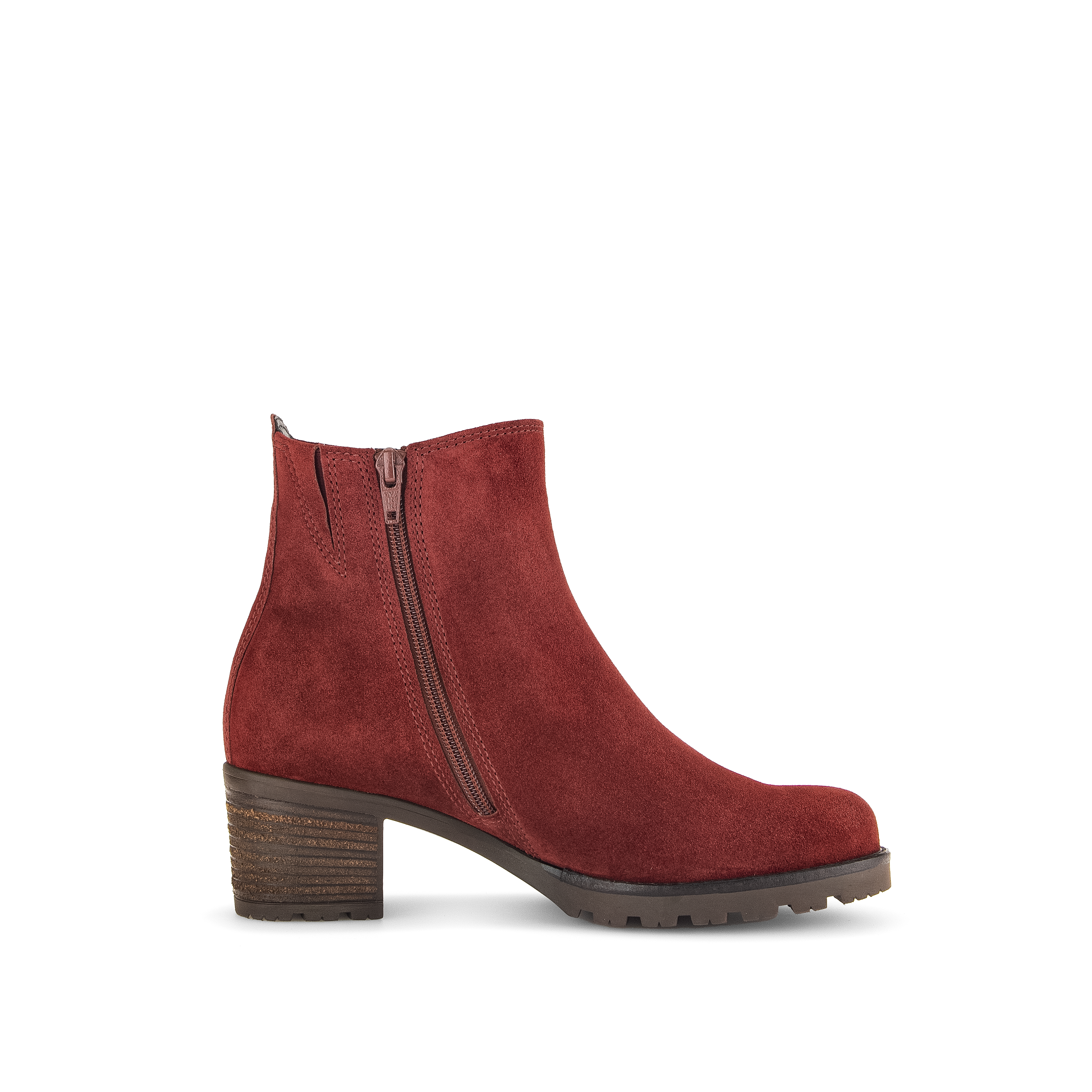 Deze enkellaars voor dames uit de Gabor comfort collectie is gemaakt van zacht suede in de kleur donker opera. Het laarsje staat op een soepele rubberzool en heeft een 45mm hak. De binnenvoering is gemaakt van zachte stof met een dun uitneembaar zooltje. Dit sportieve laarsje heeft een gemakkelijk ritsje aan de binnenzijde. Match met een sportieve of gekledere outfit en je look is compleet.