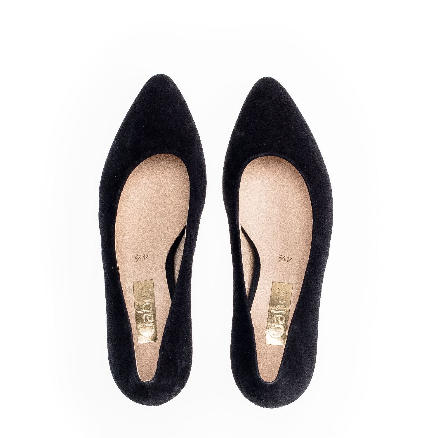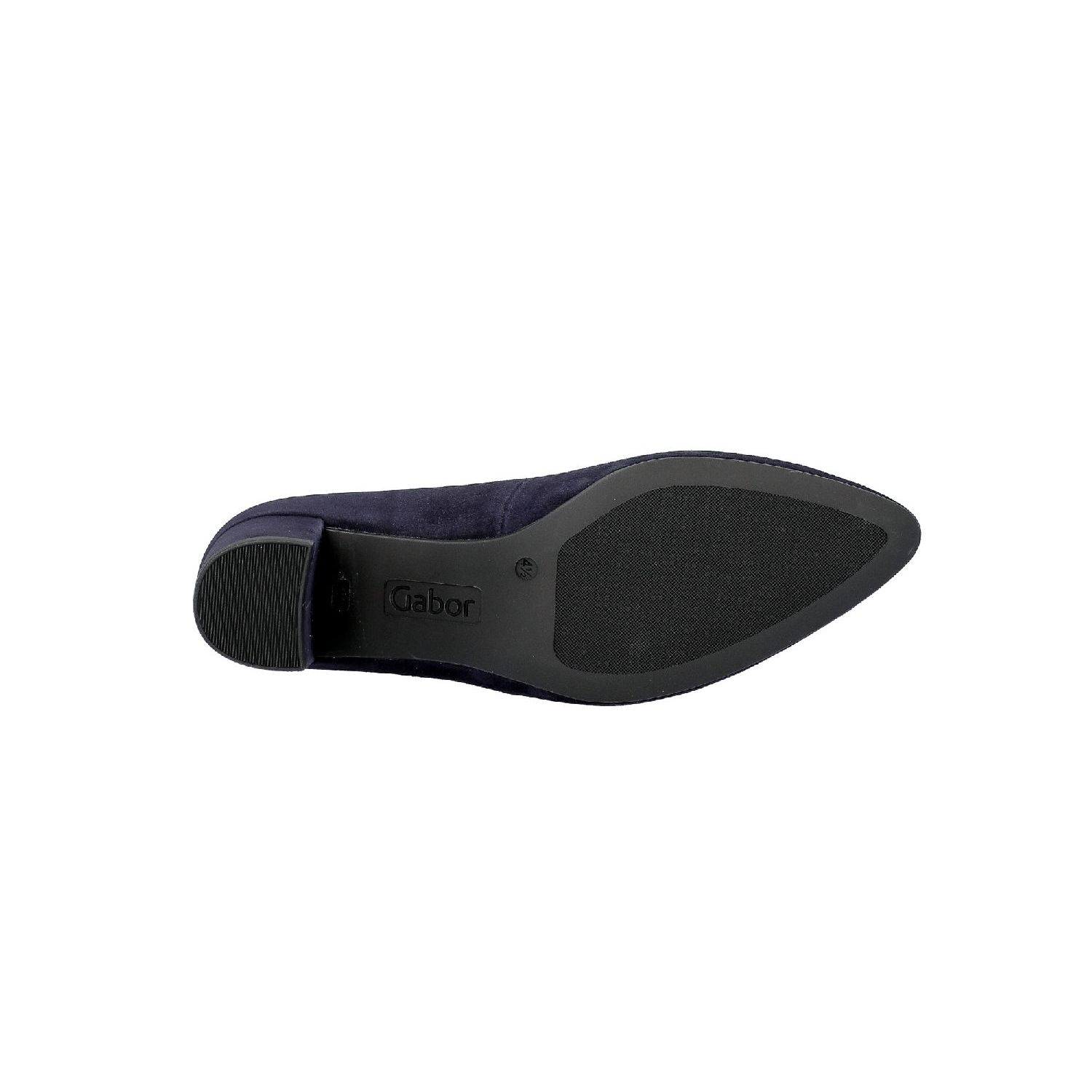 Deze donkerblauw suede pump van Gabor heeft een brede hak voor een goede stabiliteit en een hoog loopcomfort. De pump is leergevoerd en heeft een rubberzool.