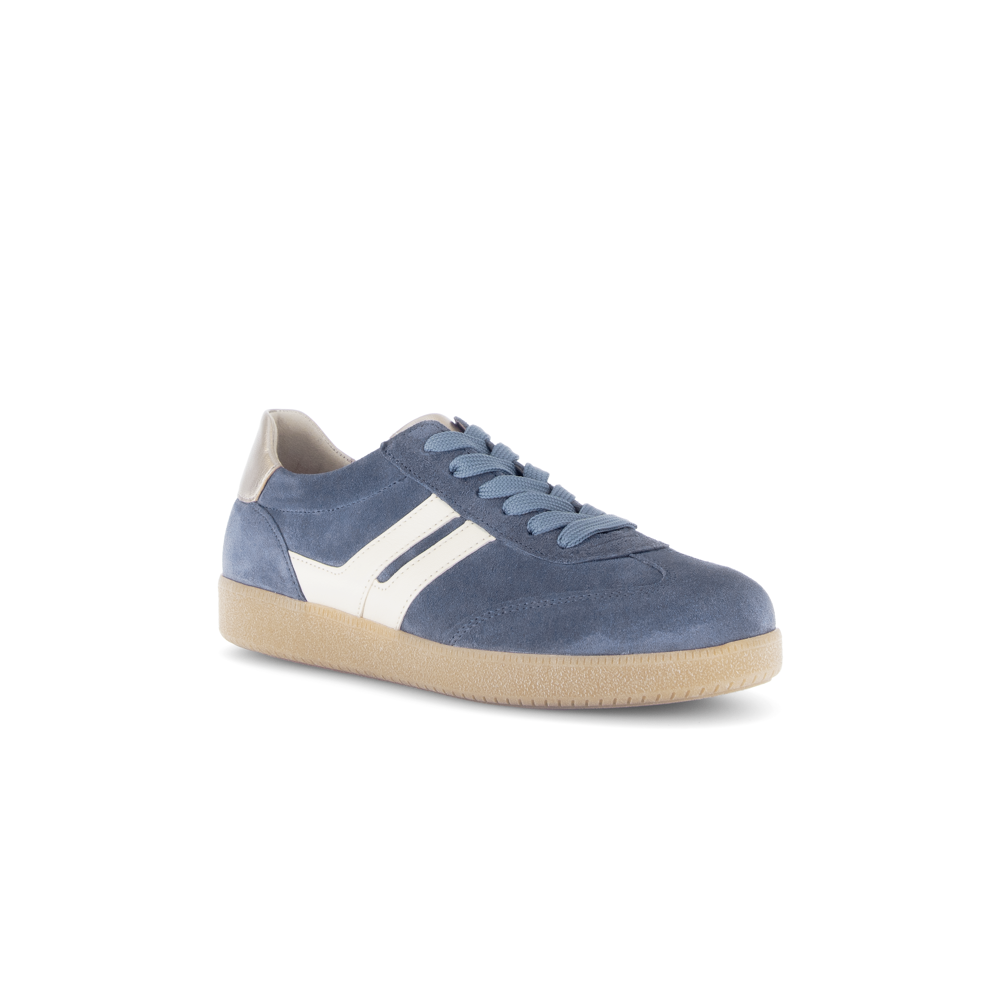 Deze Denim retro sneaker voor dames uit de Gabor Fashion collectie is gemaakt van jeansblauw suede met witte en metallic accenten op de zijkant en de hiel die de retro uitstraling versterken. De rubber gummi zool is soepel en geeft goede grip en demping. De binnenvoering en het uitneembare voetbed zijn gemaakt een combinatie van soepel leer en zachte stof.