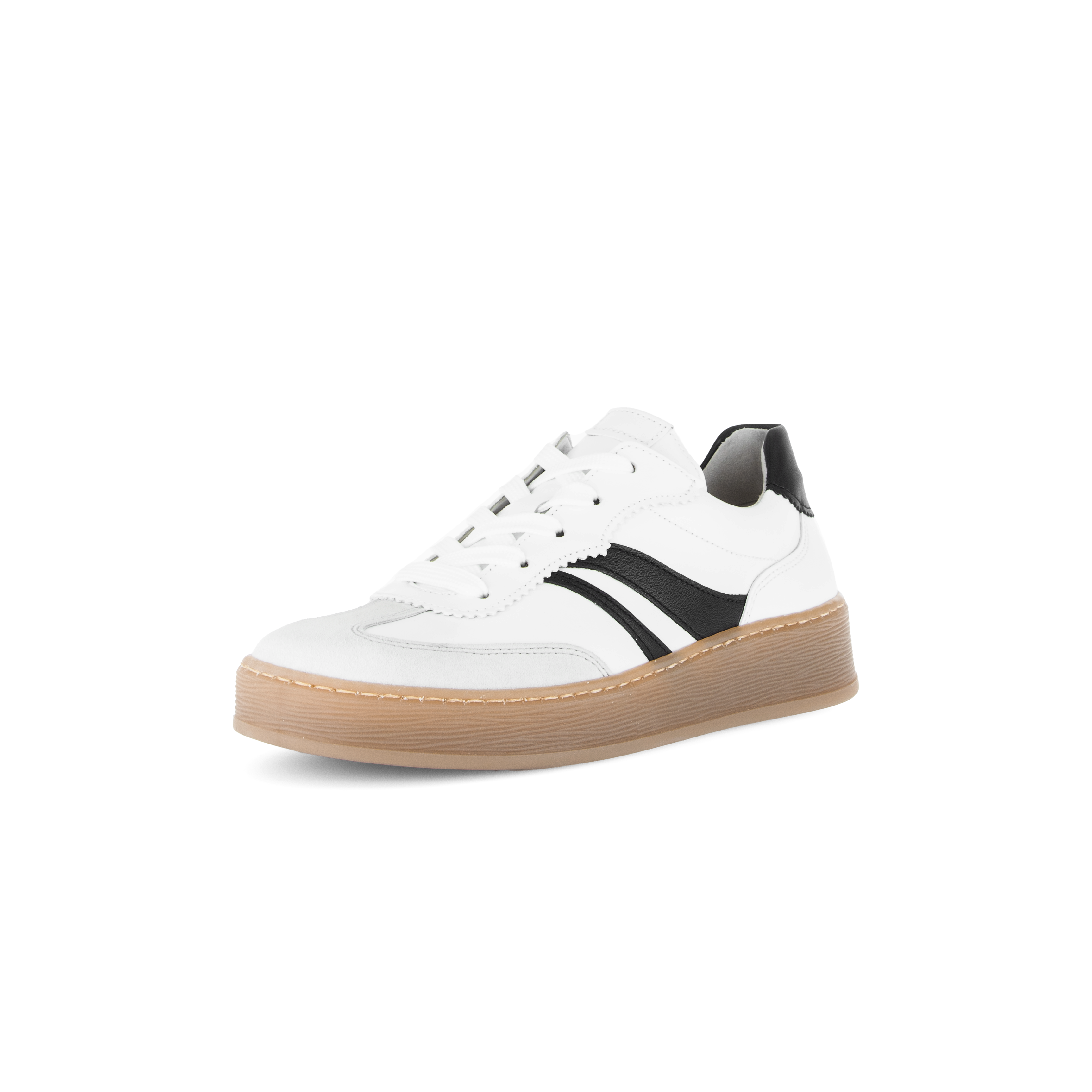 Wit leren sneaker voor dames uit de Gabor Comfort collectie is gemaakt van soepel en zacht leer met sportieve zwarte accenten. De vintage sneaker heeft een zachte en comfortabele binnenvoering en een verende binnenzool die ook uitneembaar is zodat ook een eigen voetbed gebruikt kan worden. De soepele rubberzool geeft goede grip en comfort bij elke stap. Match deze chique suede sneaker bij je casual outfit en je look is compleet.