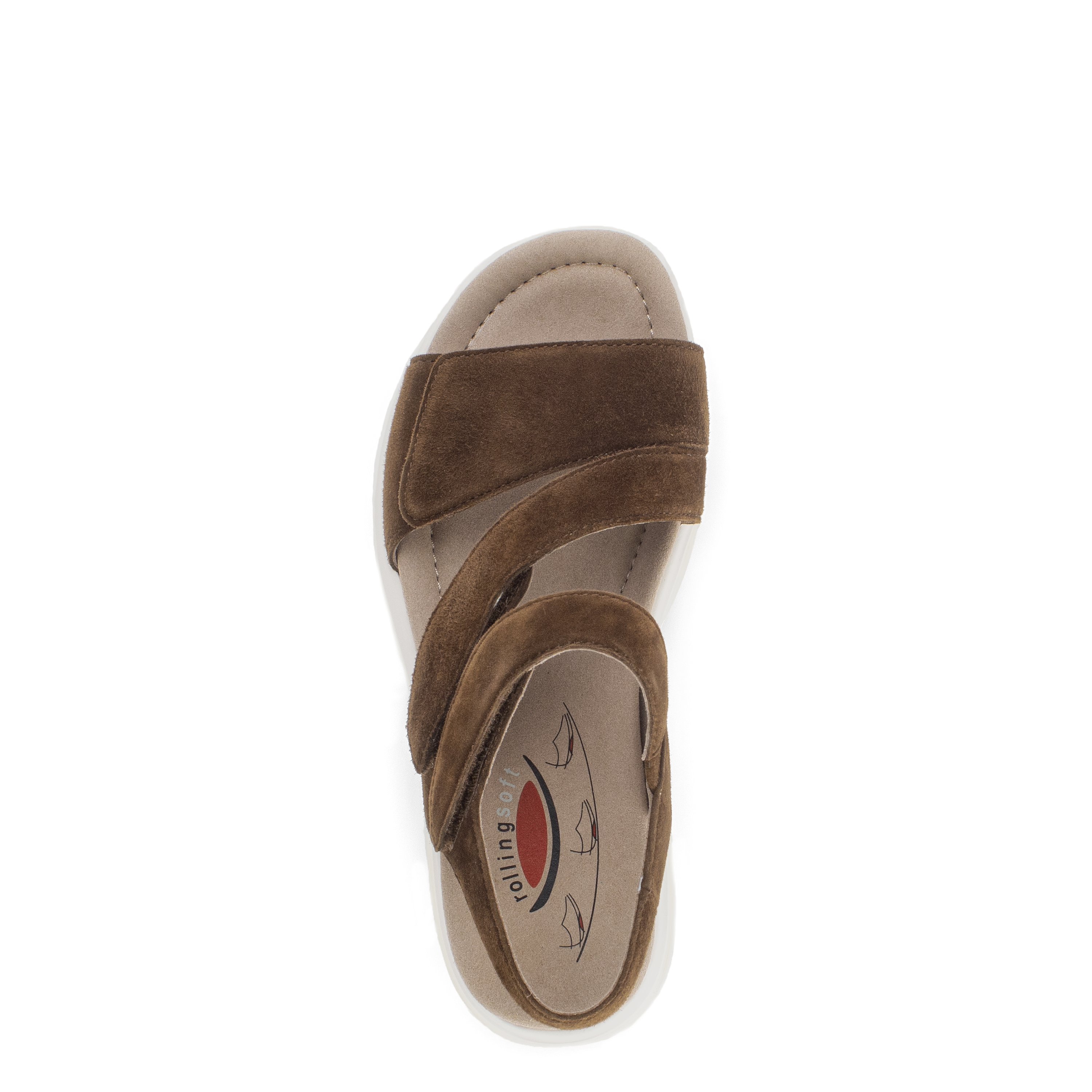 Deze Rolling Soft sandaal voor dames is gemaakt van soepel suede in de kleur bruin. De drie klittebanden sluiten perfekt rond de voet en dankzij de zachte kunststof voering en de lichtgewicht zool met RollingSoft technologie loopt deze sandaal de hele dag soepel en comfortabel. Match deze sportieve sandaal voor dames bij je casual outfit en je look is compleet.