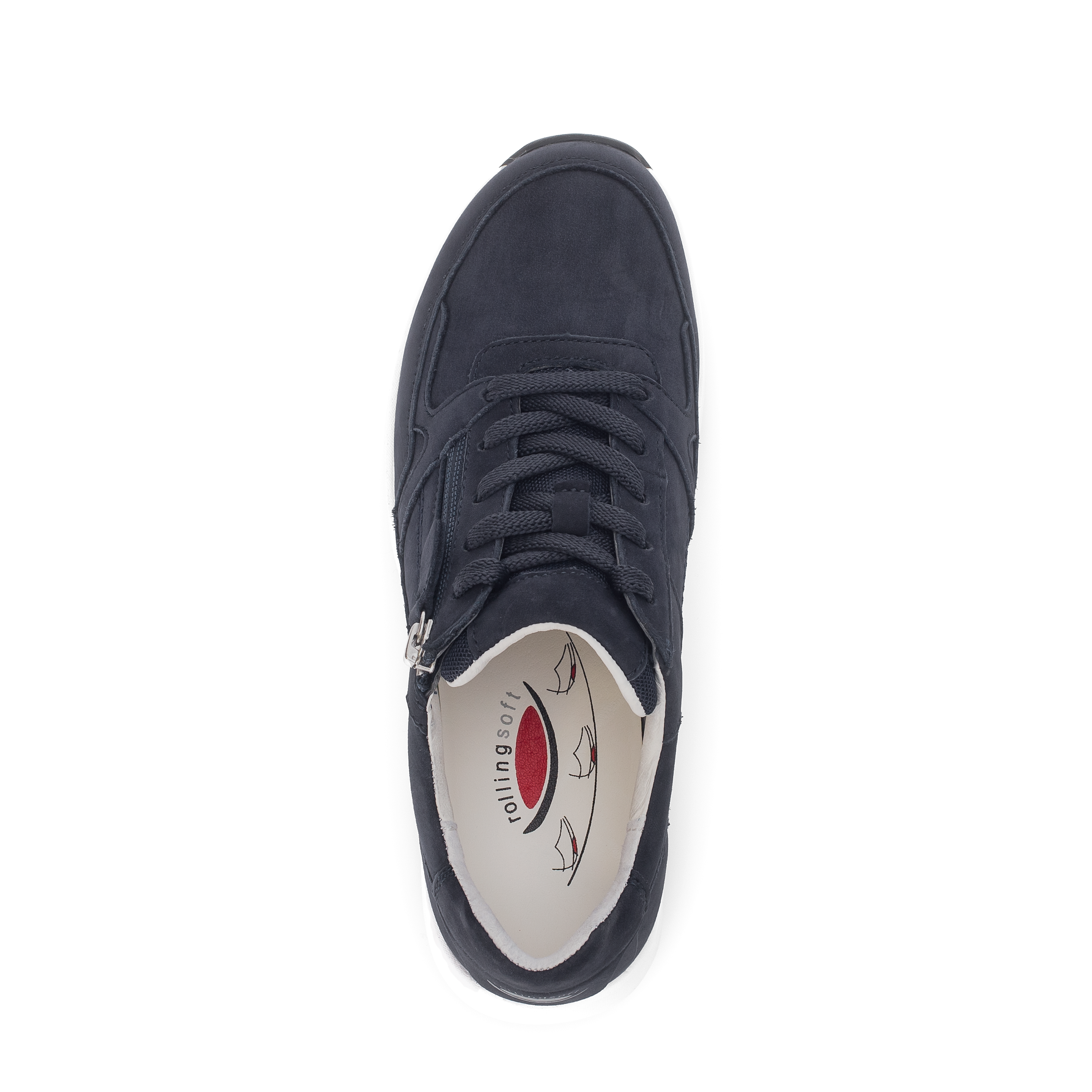 Deze navy blauwe sneaker voor dames is gemaakt van soepel blauw nubuck. Het witte onderwerk geeft de sneaker een frisse en modische look. Deze sportieve damesschoen heeft naast de vetersluiting een makkelijk ritsje. De leren binnenvoering en het uitneembare voetbed voelen comfortabel aan. De rolling soft techniek in de loopzool van deze sneaker zorgt voor een fijne afwikkeling tijdens het lopen. De wijdte van deze schoen is breder dus prima geschikt voor een volle voet en een eigen voetbed.