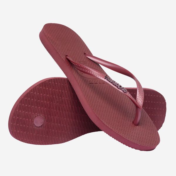 De Slim Logo Metallic Amaranth slipper voor dames is een paarse metallic slipper met een metalen Havaianas logo.