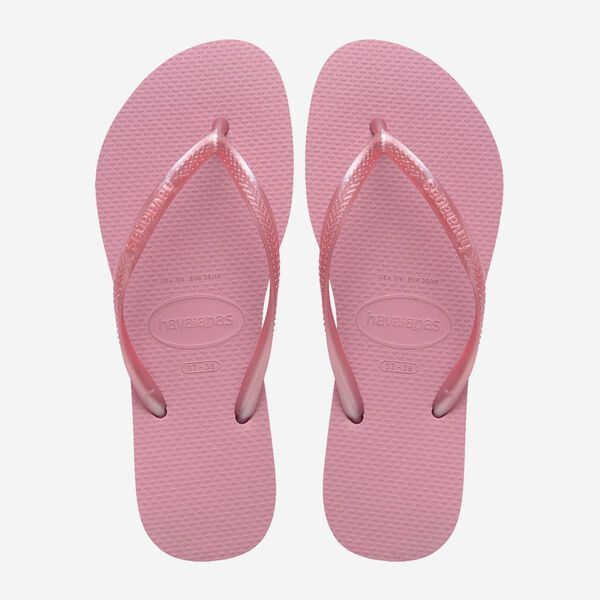 De Slim Rose Chiffom is een roze slipper op een roze zool en roze bandjes met havaianas logo.