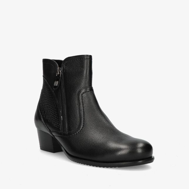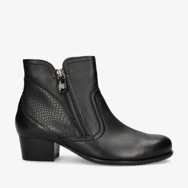 De 231.021 is een enkellaarsje voor dames gemaakt van zwart leer met een crocoprint op de schacht. Dit leren laarsje heeft twee handige ritsjes voor een makkelijke instap. De wijdte K en het uitneembare voetbed zorgt voor voldoende ruimte voor de brede voet. De rubberzool met licht profiel en het makkelijk loopbare hakje zorgen voor een optimaal loopcomfort.