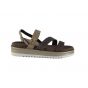 Lazamani sandaal uitgevoerd in geprint leer in de kleur beige en bruin. Te sluiten d.m.v. een gesp aan de hielband. Leergevoerd.
