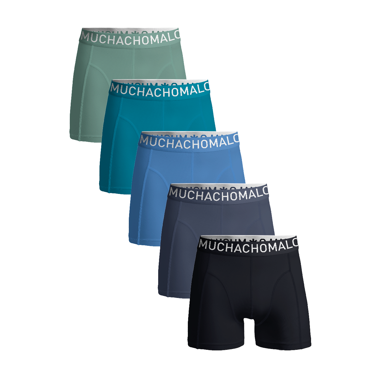 De Muchachomalo 5-pack Light Cotton Solid LCSOLID1010-161 is een comfortabele en stijlvolle multipack met vijf heren boxershorts in een mix van moderne, effen kleuren zoals groen, blauw, grijs en zwart. Deze boxers zijn onderdeel van de populaire Light Cotton collectie en staan bekend om hun lichte draagcomfort en perfecte fit.