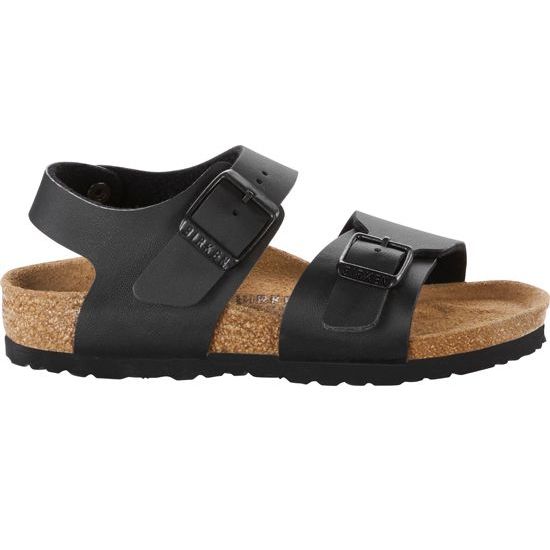 Dit is een kindersandaal van het merk Birkenstock art 187603 model New York. Het bovenwerk van de sandaal is zwart en de binnenkant van de 2 banden zit zachte stof dat het voor de kindervoetjes lekker zacht aanvoelt.