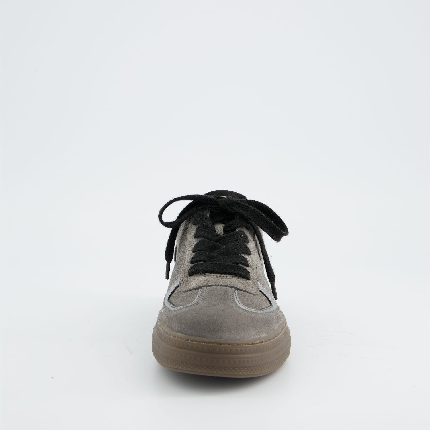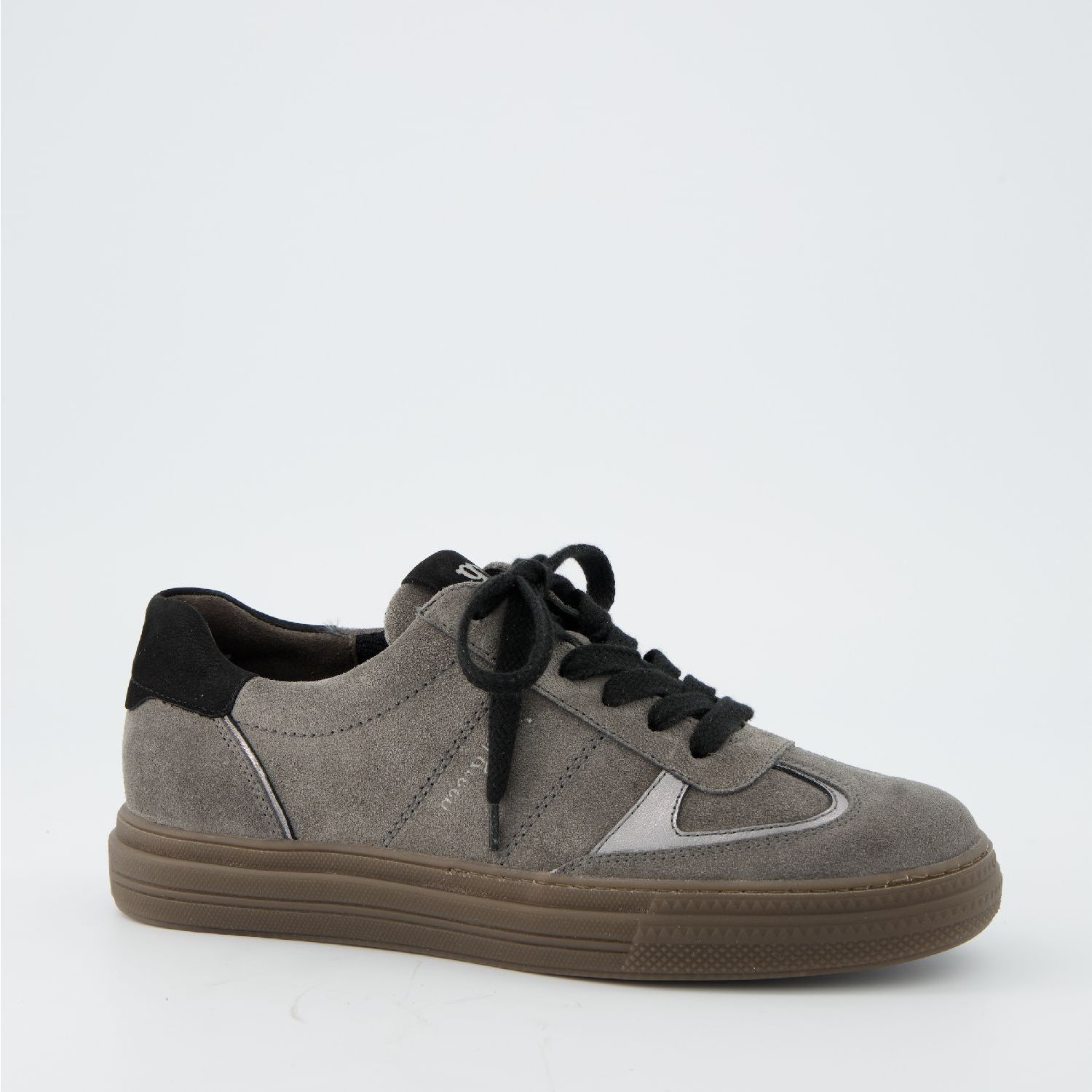 Suede retro sneaker voor dames gemaakt van zacht en soepel suede in de kleur Titan/Black met zwart suede en metallic accenten. Deze sportieve veterschoen heeft een zachte badstof binnenvoering en een comfortabel zacht uitneembaar voetbed. De soepele rubberzool geeft goede grip en een elegant sportieve uitstraling.