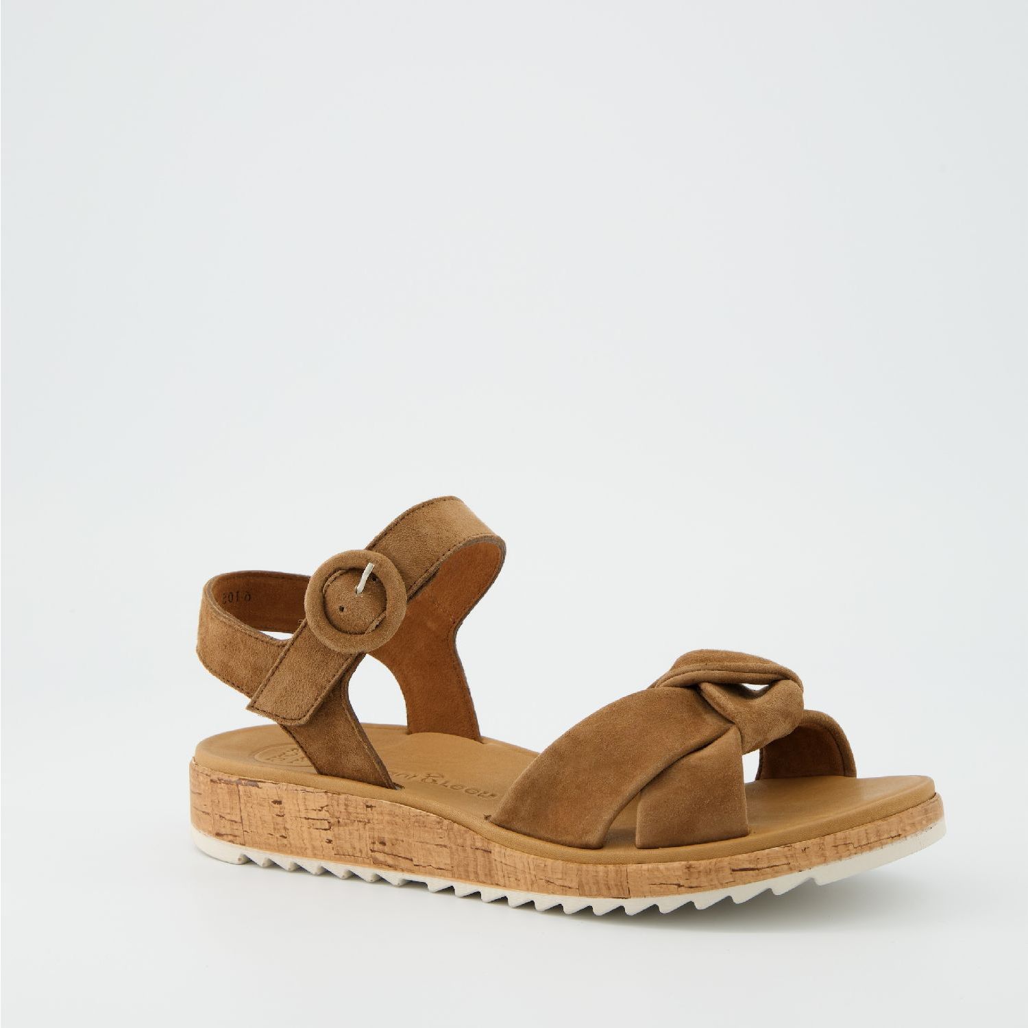 Trendy bruine sandaal 6105 voor dames van Paul Green. Deze sandaal is gemaakt van soepel suede met een leren binnenvoering. De verborgen klittenbandsluiting op de enkelband, wordt gecamoufleerd door de ronde gesp. Het leren voetbed en de leren voering zorgen voor veel loopcomfort. Dankzij de witte rubberen loopzool met ribbelprofiel heb je een goede grip bij iedere stap. Combineer 'm onder een fijne jurk of juist onder een jeans om je outfit een trendy touch te geven!