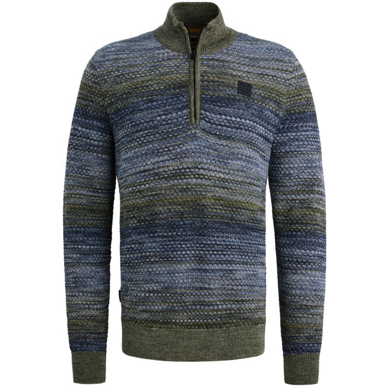 De PME-Legend half zip collar colormix in vintage indigo is een stoere trui met een sportieve halve rits en een unieke kleurmix die zorgt voor een moderne look. Gemaakt van zacht, hoogwaardig katoen voor optimaal draagcomfort. De diepe vintage indigo tint gecombineerd met het groen geeft deze trui een tijdloze, mannelijke uitstraling — perfect voor elke casual outfit.
