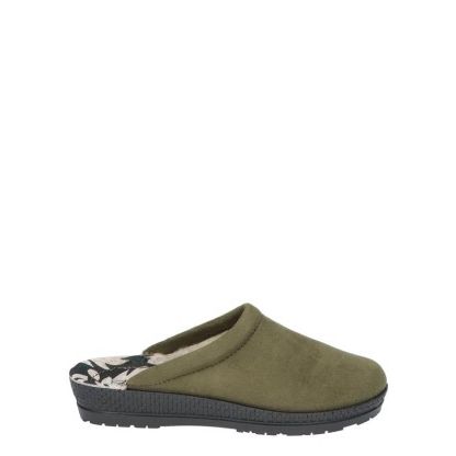 Rohde 2291-61 is een muil van velour voor dames in de kleur Olive groen, de muil heeft een stevige rubberzool en een comfortabele zachte en warme voering.