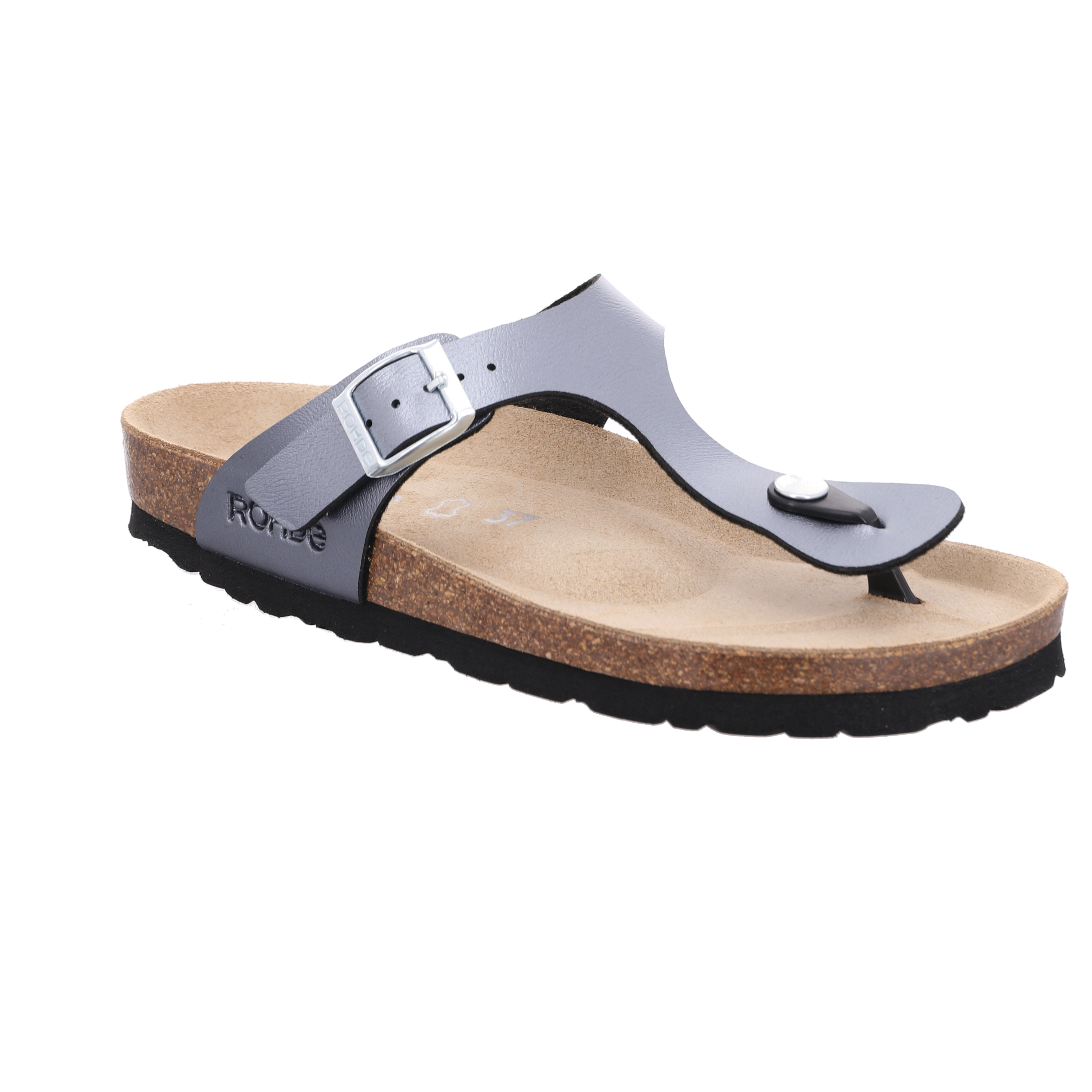 De Alba is een comfortabele teenslipper voor dames met een zacht en ondersteunend voetbed. De verende tussenzool van kurk en de stevige rubberzool zorgt voor veel comfort en grip bij elke stap. De kleur Graphite is een grijze metallic kleur die makkelijk te combineren is bij een zomerse outfit.