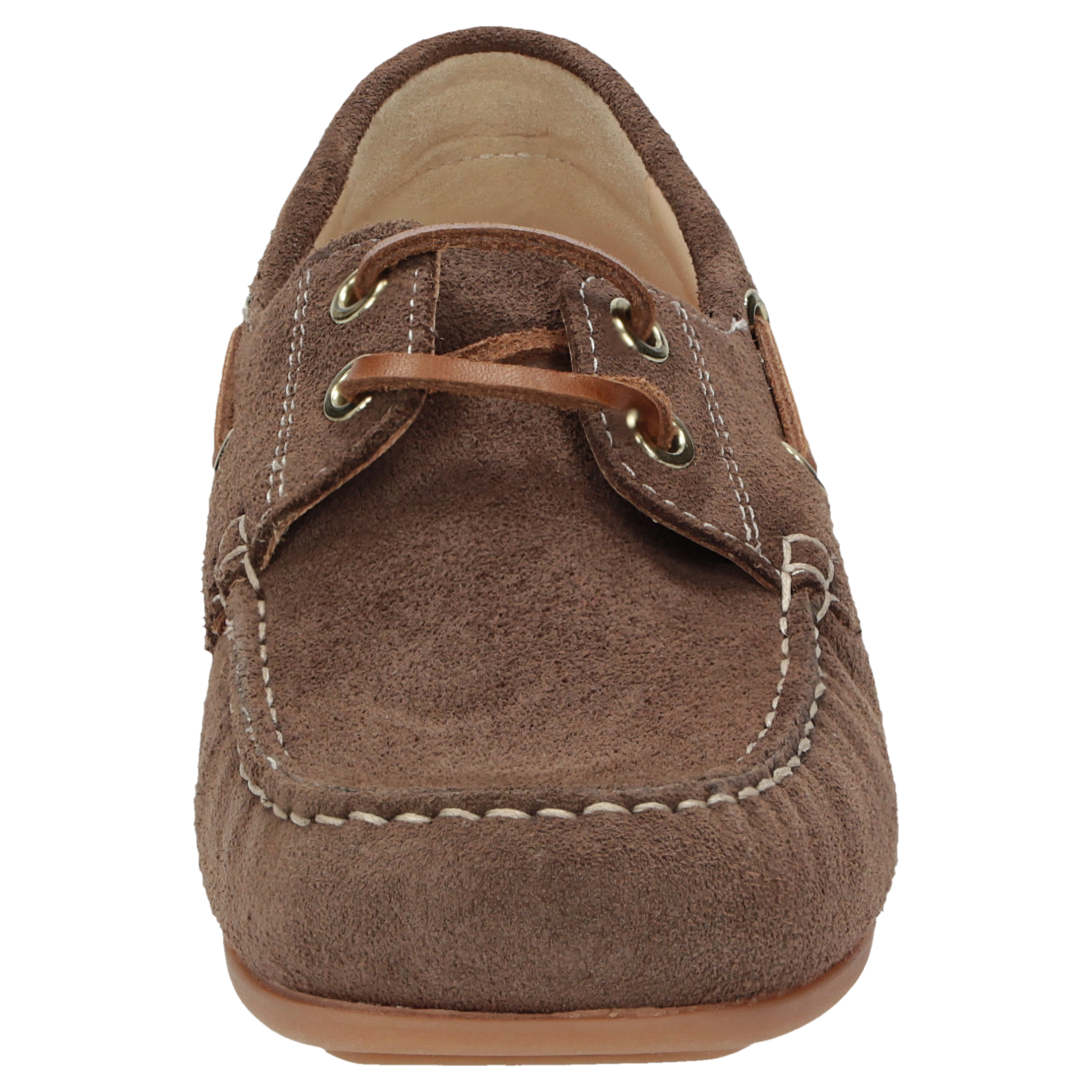 De Simadesa is een bootschoen voor dames gemaakt van soepel Coca bruin suede. De schoen heeft een uitneembaar supersoft voetbed en een leren binnenvoering die comfortabel zacht aanvoelt. Het soepele zooltje geeft goede grip en loopt zacht. Dankzij de leren vetersluiting is de schoen goed verstelbaar zodat deze perfekt past aan de voet. Match deze fijne bootschoen bij je zomerse outfit en je look is compleet.