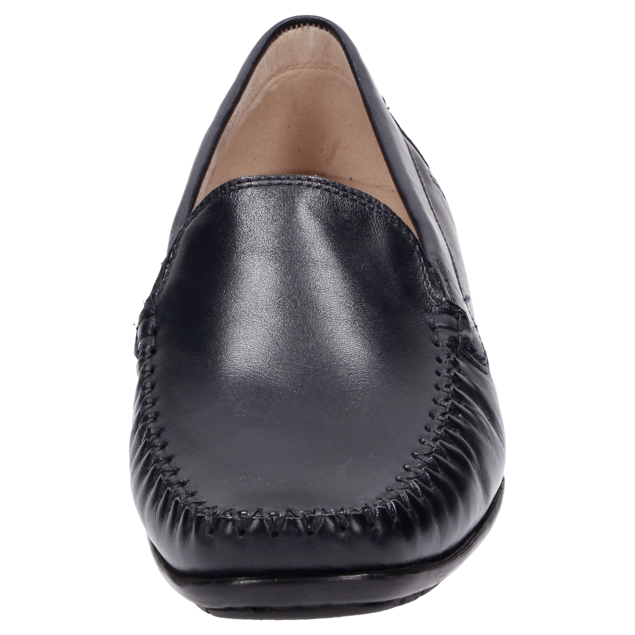 De Cortizia 705 H Candala Night Blue is een donkerblauwe loafer voor dames gemaakt van soepe en zacht leer.De leren binnenvoering en uitneembare voetbed voelen comfortabel aan. De soepele rubberzool geeft grip en comfort bij elke stap. Dankzij de wijdte H is deze klassieke instapper voor dames prima geschikt voor de vollere voet en eventueel eigen voetbed.