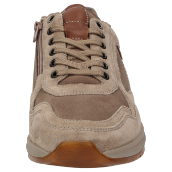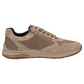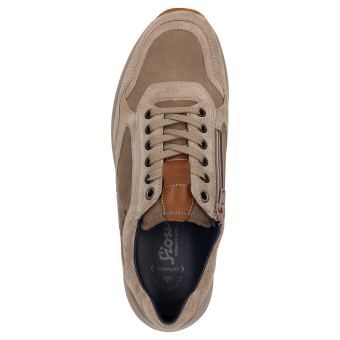 De Turibio is een beige sneaker voor heren. De sneaker is gemaakt van soepel suede en nubuck in de kleur Gelso en heeft naast de vetersluiting ook een makkelijk ritsje. Deze Sioux sneaker heeft een bredere leest wijdte J en een uitneembaar voetbed zodat deze sneaker prima past bij een bredere voet en eventueel het gebruik van een eigen voetbed. Dankzij het supersoft voetbed en de soepele rubberzool geeft deze sneaker je de hele dag optimaal comfort en grip.