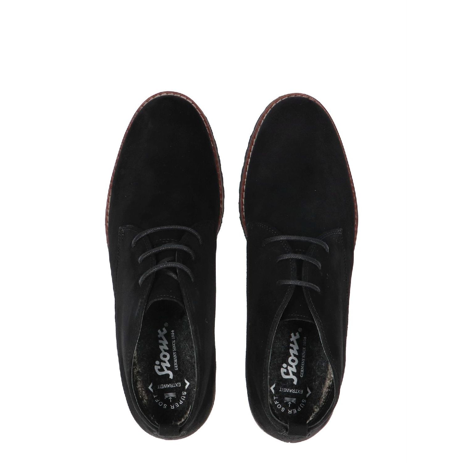 De Sioux Meredith-702-H Zwart Lamssuede is een zwart suede veterbootje met rubber profielzool en een aangename warme voering. Het voetbed is uitneembaar en is dus geschikt voor steunzolen. De brede H leest geeft voldoende ruimte voor de bredere voet.