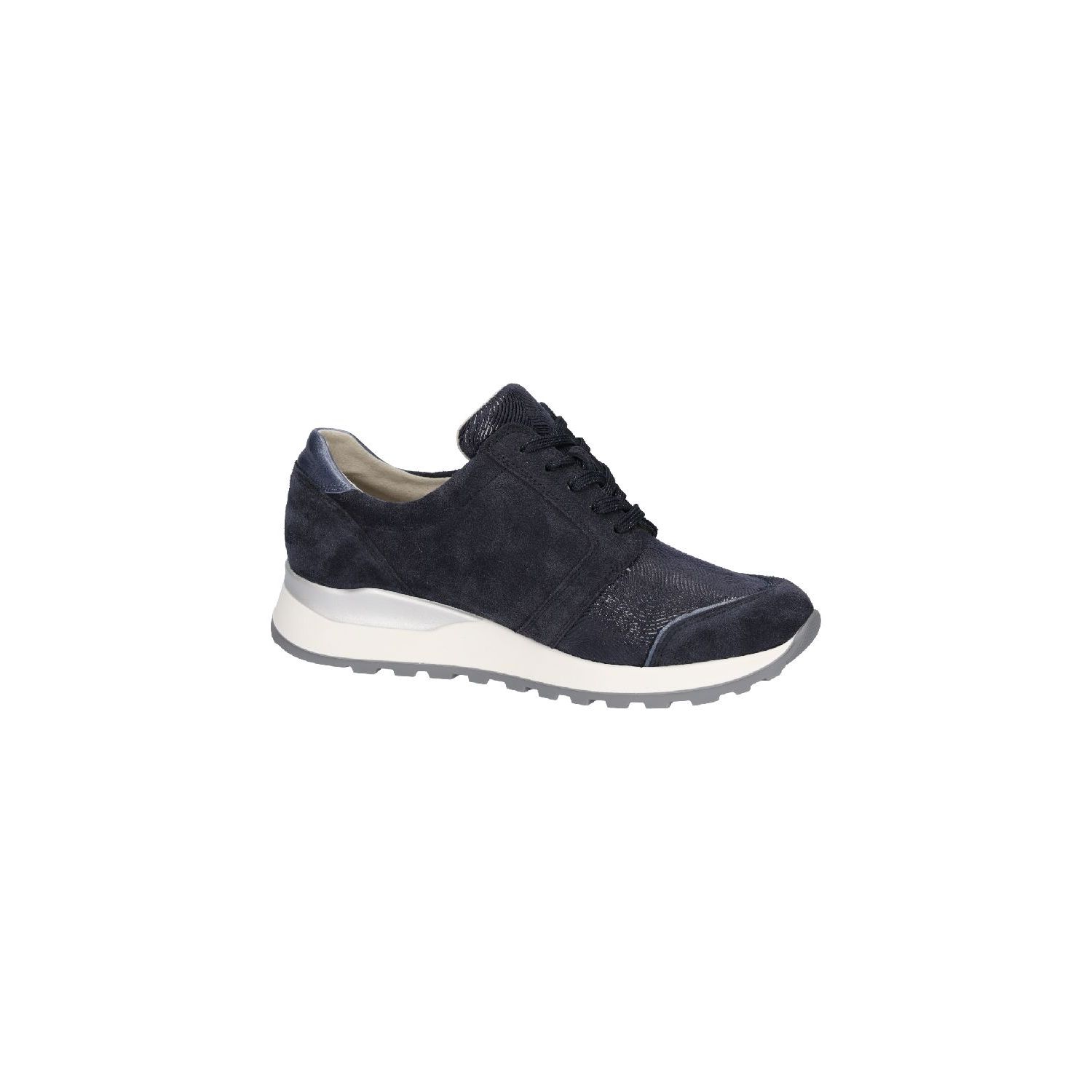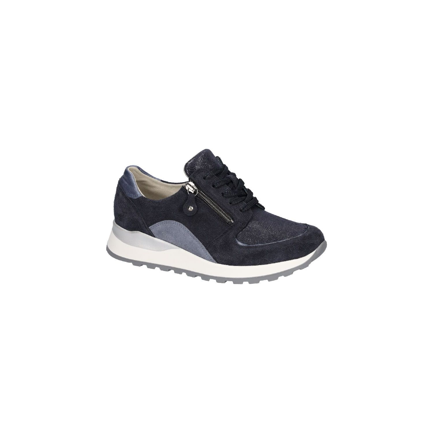 Deze donkerblauwe sneaker voor dames is gemaakt van zacht nubuck en heeft extra zacht stretch materiaal op de voorvoet zodat deze schoen altijd comfortabel aansluit op de voet, ideaal voor dames met een halux. De zachte binnenvoering en uitneembaar voetbed zorgen voor een prima loopcomfort. Naast de vetersluting heeft deze ortholite sneaker een ritssluiting voor het gemakkelijk aan en uittrekken van de schoen. De sportieve rubberzool is soepel en licht van gewicht.