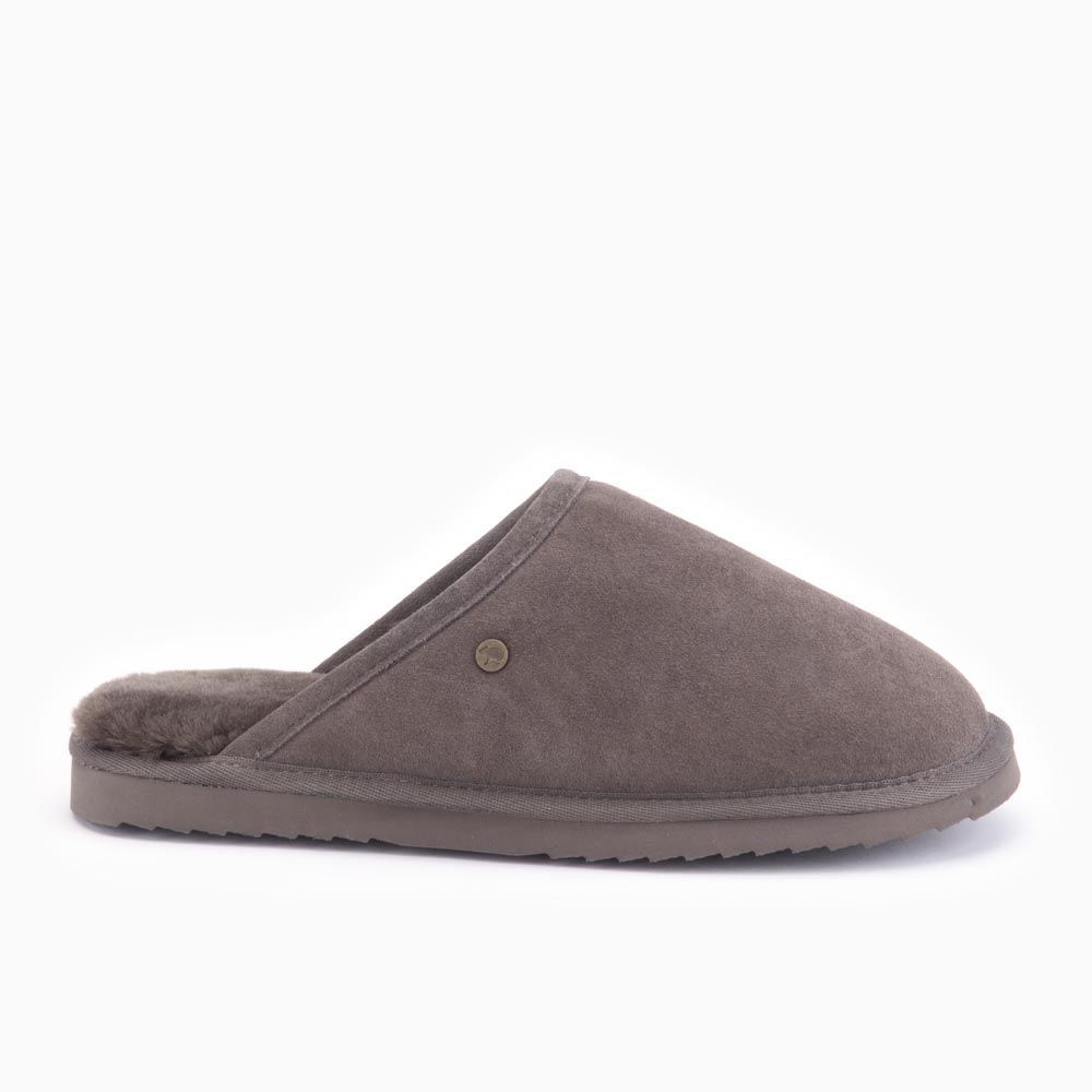 Heren slipper in Pebble suede op een stevige zool met een voering van 100% Merino wol.
