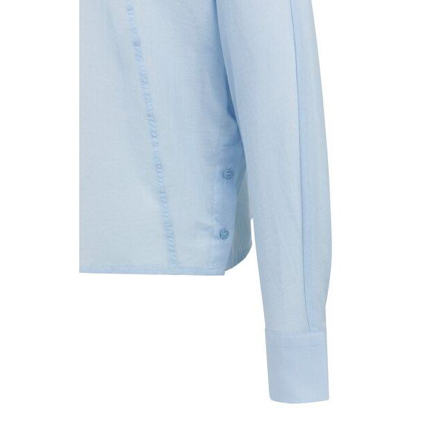 De blouse valt op door de wijde, aangeknipte mouwen die naar de polsen toe smaller worden, wat een prachtig volume creëert rond het bovenlichaam. De zichtbare naden breken het oppervlak en voegen textuur toe, waardoor de blouse net even spannender is dan een standaard top.