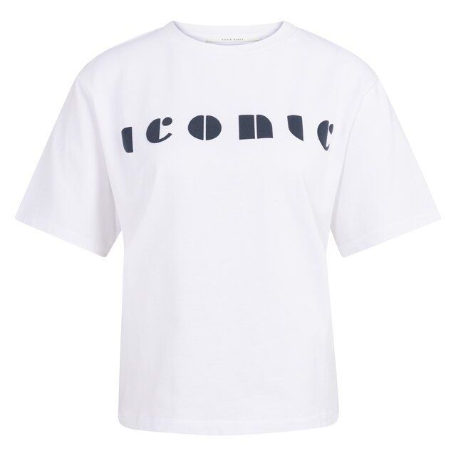 De frisse kleur Pure White Dessin geeft het T-shirt een cleane en veelzijdige look, terwijl de grafische print op de borst – met een moderne “iconic” tekst – zorgt voor een subtiele, eigentijdse twist. Hierdoor krijgt het shirt net dat beetje extra en wordt het een echte eyecatcher binnen je casual outfits.