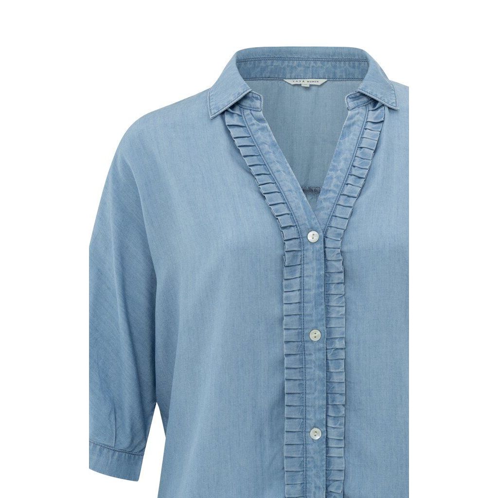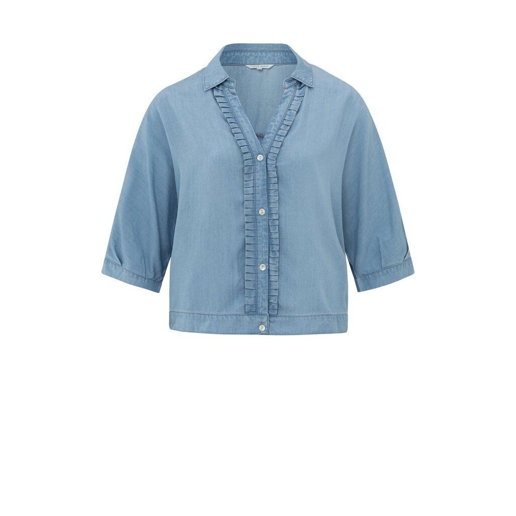 Ontdek de ultieme fusion van comfort en stijl met onze YAYA chambray batwing top met een speelse ruche. Gemaakt van hoogwaardig chambraymateriaal, omhult deze top je in zachte luxe, perfect voor dagelijkse elegantie. De batwing mouwen bieden moeiteloze bewegingsvrijheid en een moderne uitstraling. De subtiele ruche voegt een vleugje verfijning toe aan dit veelzijdige stuk, waardoor het ideaal is voor zowel casual als formele gelegenheden. Upgrade je garderobe met deze tijdloze klassieker en omarm moeiteloze chic met een vleugje speelsheid.