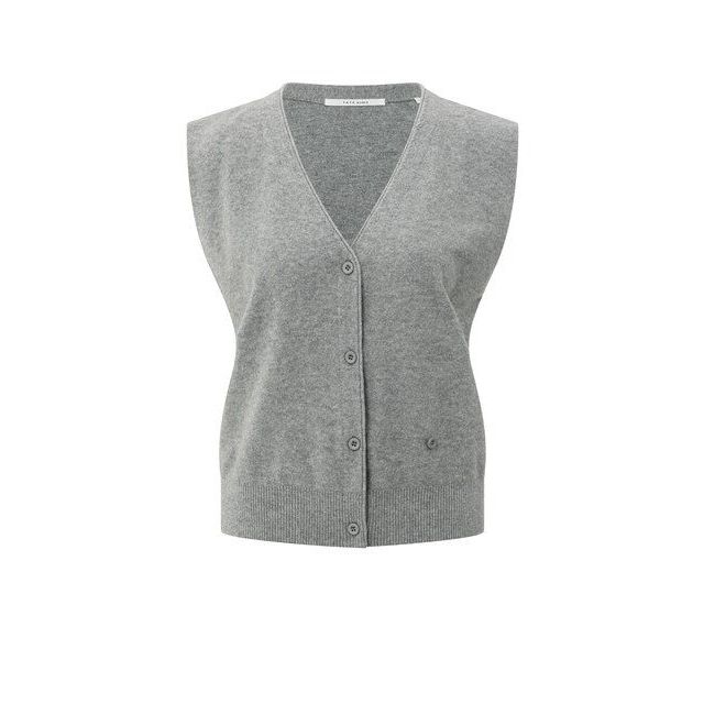 Stijlvolle gebreide gilet van YAYA. Uitgevoerd in een zachte medium grey melange, is dit item de perfecte layering piece voor elk seizoen. De diepe V-hals en relaxte pasvorm maken het moeiteloos te combineren over een blouse, T-shirt of jurk.