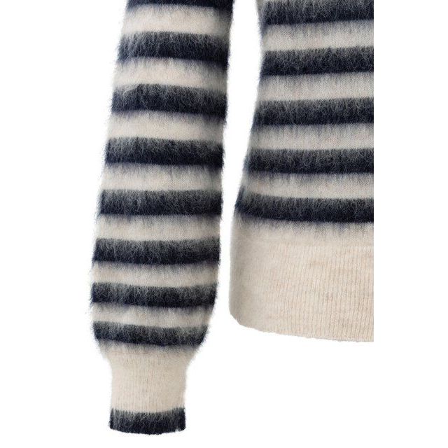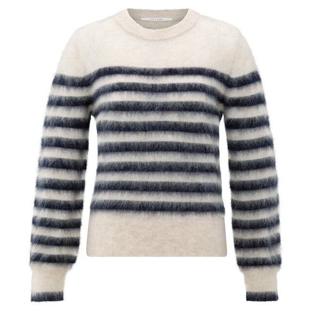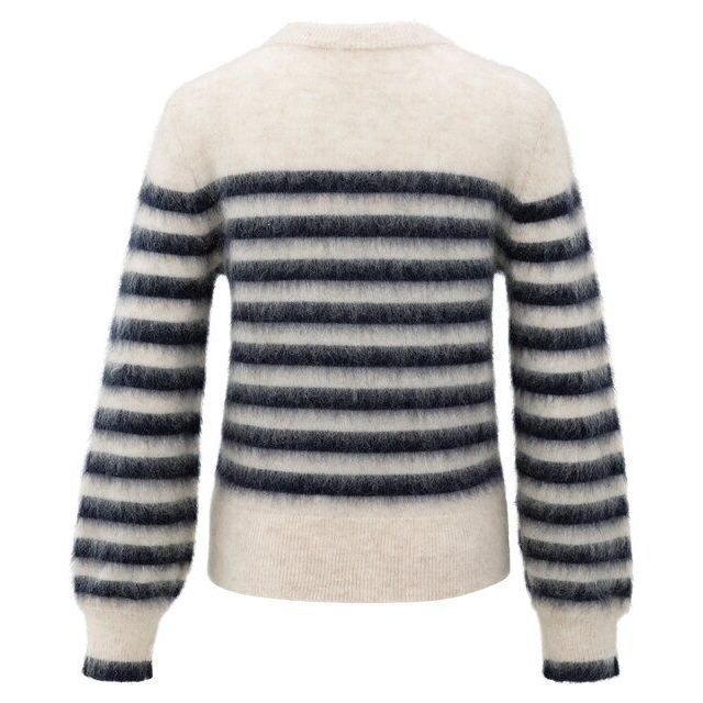 De YAYA gestreepte trui met ronde hals in wit met collegiate blue strepen is een speelse knit met een frisse en moderne uitstraling. De strepen geven de trui een sportieve touch, terwijl de ronde hals zorgt voor een tijdloos design. Met de strepen in de opvallende collegiate blue tint is dit een stijlvol item dat elke casual look een trendy upgrade geeft.