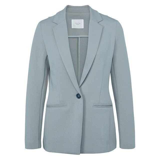 Deze blazer van Yaya is donker blauw van kleur en een aansluitend model. De blazer heeft knoopsluiting en twee zakken.