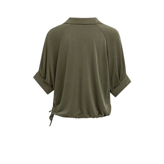 YAYA Jersey top with pleated sleeve army green