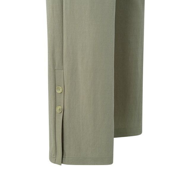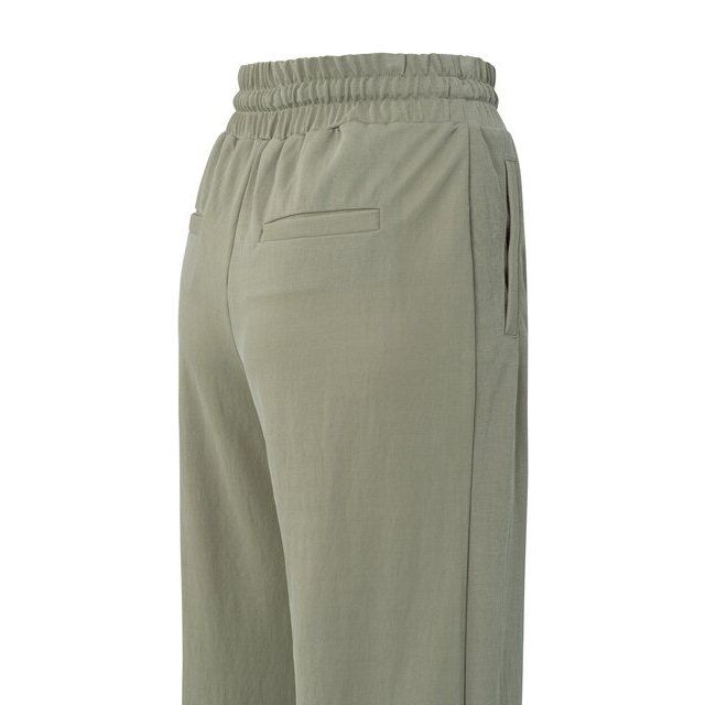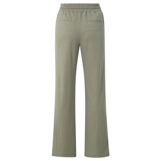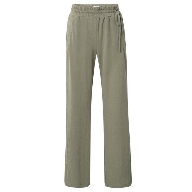 Creëer een modieuze look met de YAYA jersey broek met wijde pijpen en trendy split, verkrijgbaar in stoer legergroen. Voeg een vleugje stijl toe aan je garderobe met deze must-have broek van YAYA.