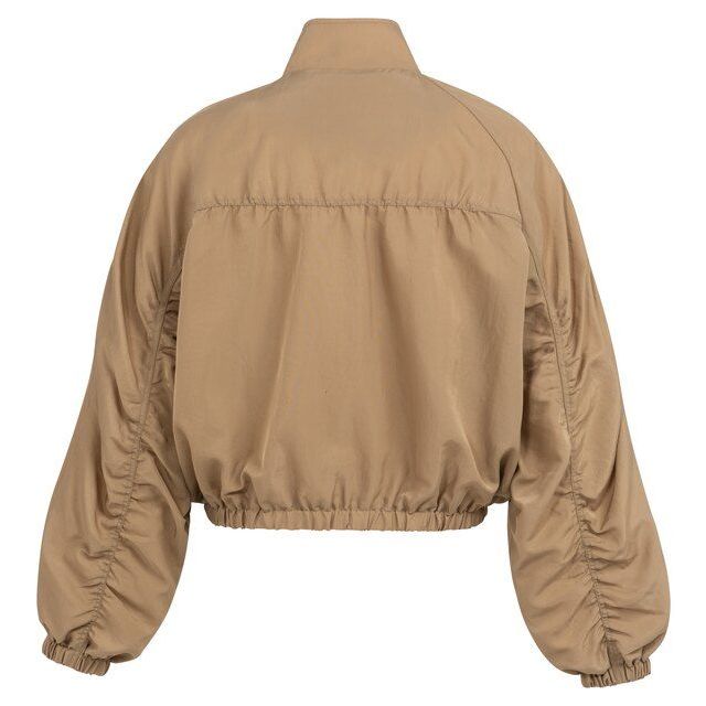 Het jack heeft een modern, kort silhouet dat net op de heup valt, waardoor het ideaal is om te dragen boven een high-waist broek of een elegante rok. De stof voelt stevig doch soepel aan, wat zorgt voor een hoog draagcomfort en een verfijnde pasvorm. Met de minimalistische ritssluiting en de strakke afwerking bij de mouwen creëert YAYA een balans tussen nonchalante chic en tijdloze klasse. Of je het nu als tussenjas gebruikt of als vervanger voor een blazer binnenshuis: dit jack in Tan Brown is een veelzijdig pronkstuk. Shop de nieuwste collectie van YAYA nu bij G-level voor een tijdloze look.