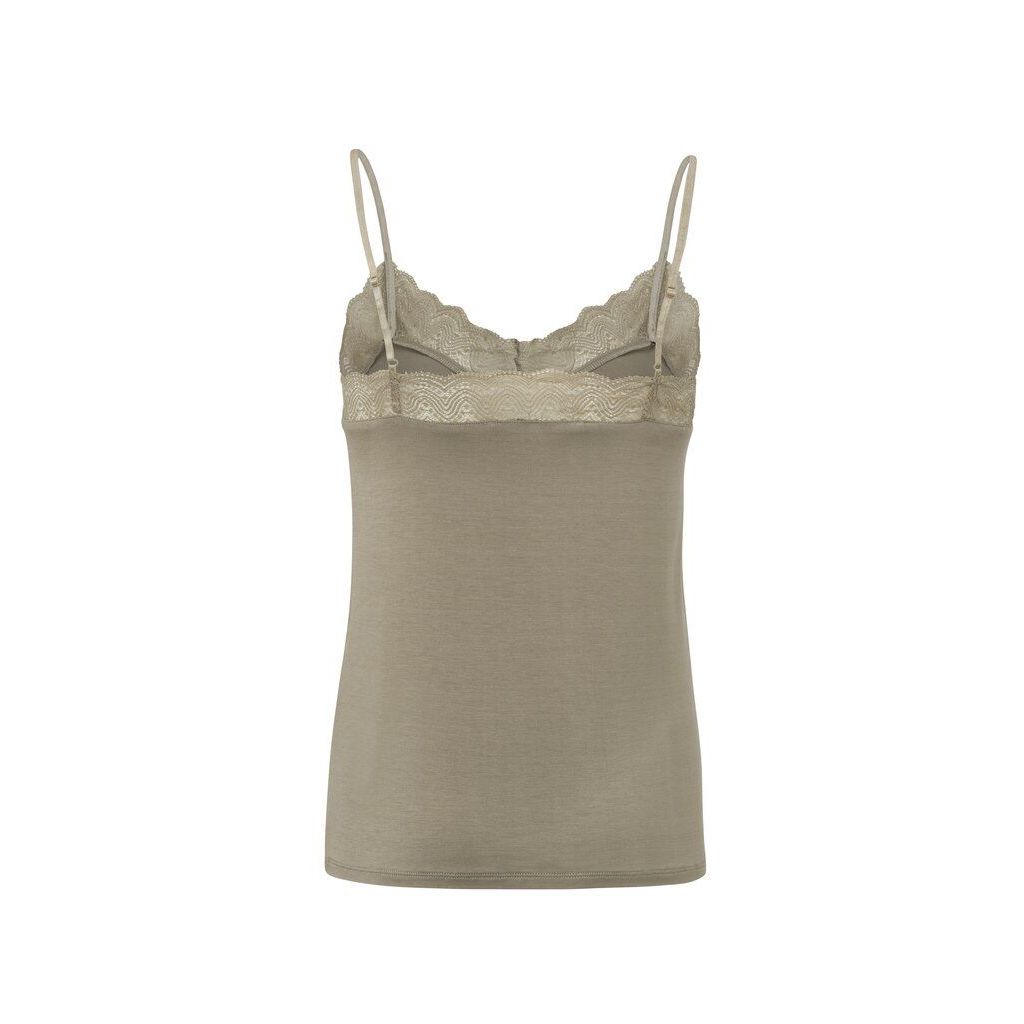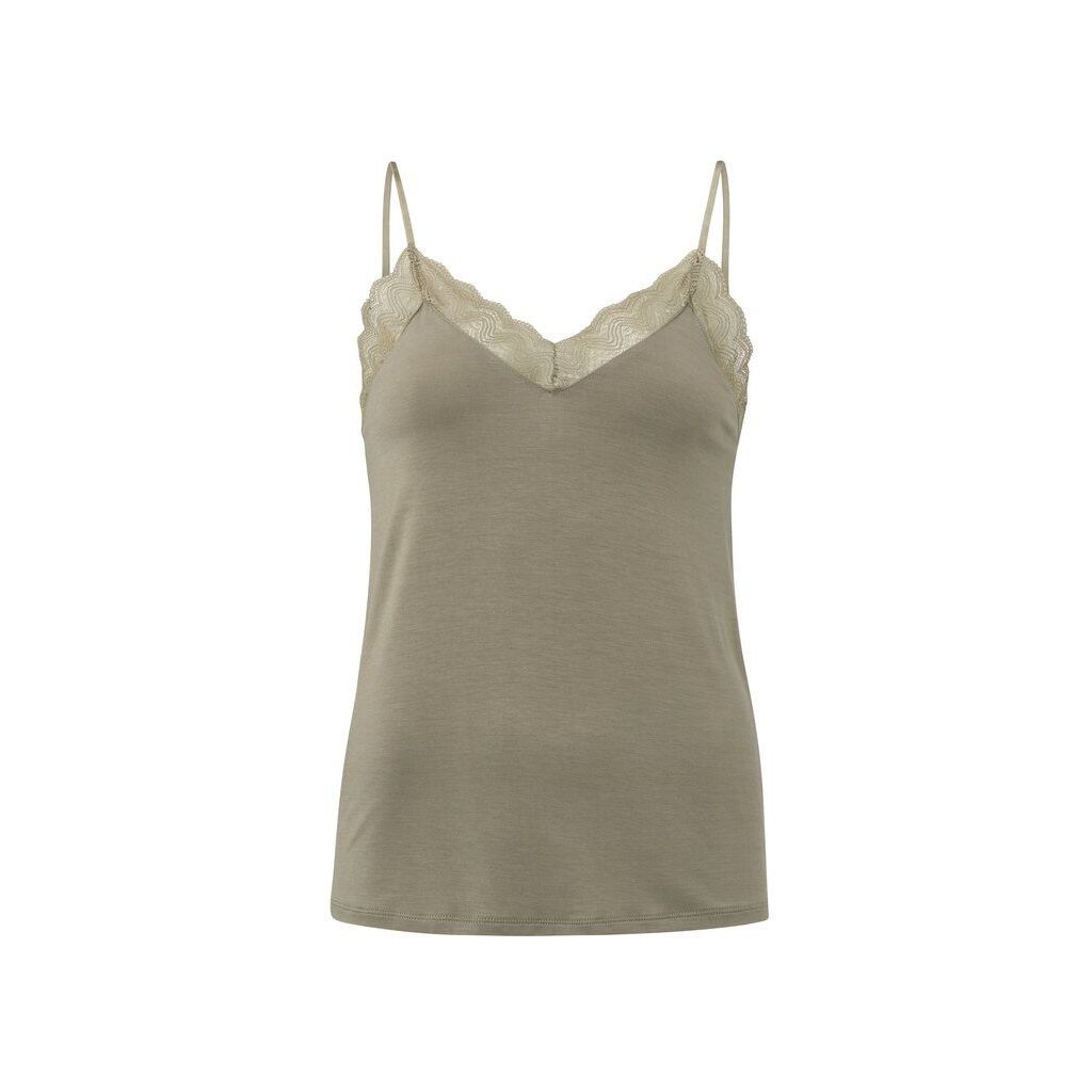 Deze top van yaya is bruin/groen van kleur. De top heeft dunne bandjes en kanten details op hals.